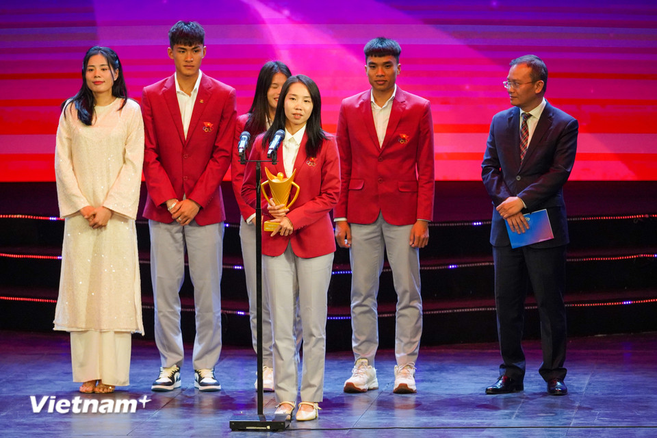 Xạ thủ Trịnh Thu Vinh đánh dấu năm thứ 2 liên tiếp nhận giải thưởng "Nữ Vận động viên của năm." (Ảnh: Việt Anh/Vietnam+)