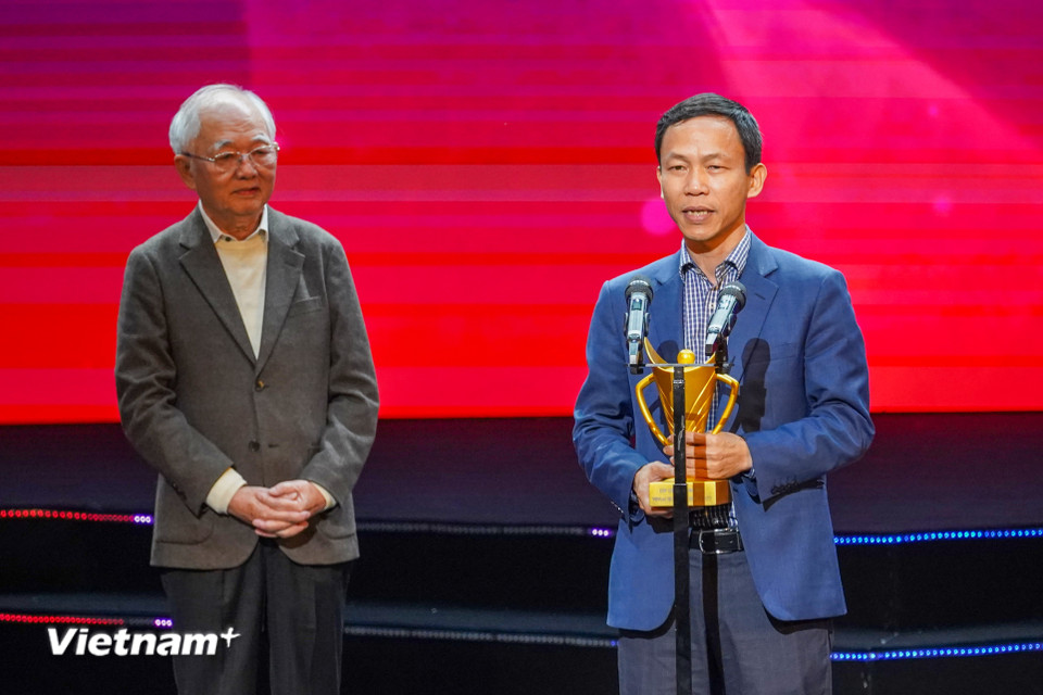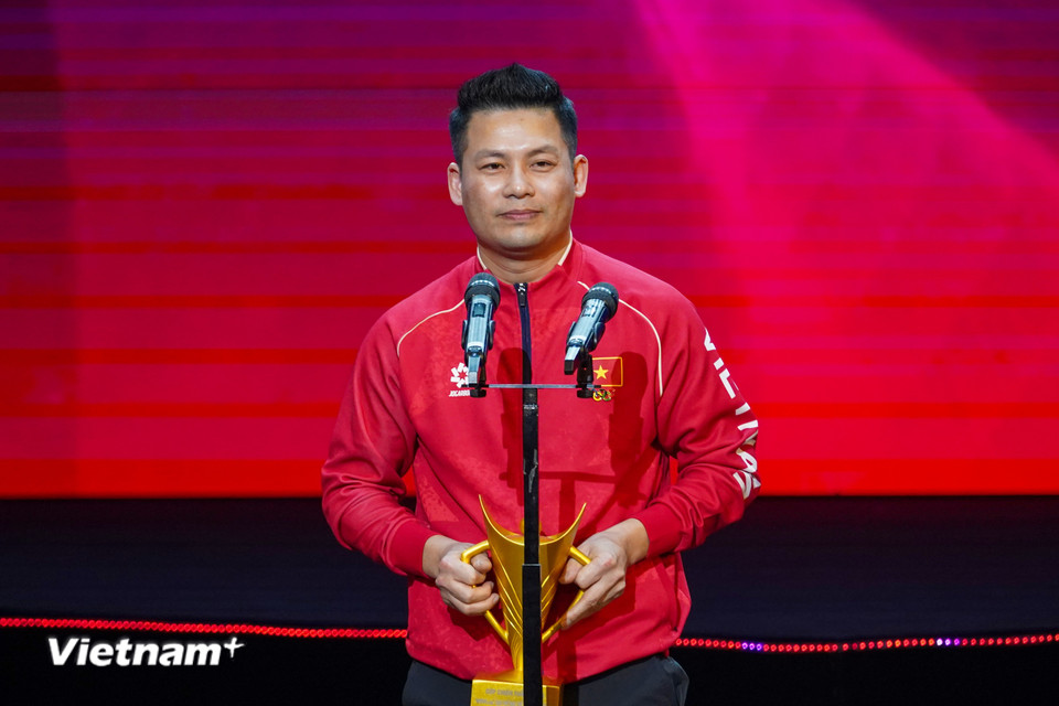 Xạ thủ U40 Hà Minh Thành khép lại đêm gala trọn vẹn với bộ môn Bắn súng của thể thao Việt Nam khi được vinh danh ở hạng mục "Nam Vận động viên của năm." (Ảnh: Việt Anh/Vietnam+)