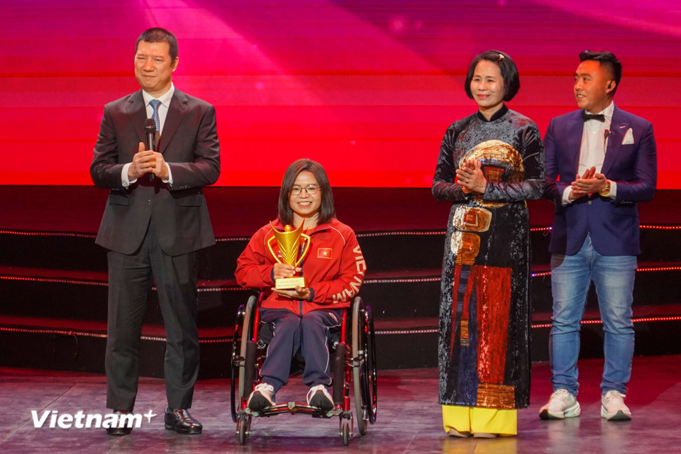 Giải thưởng "Vận động viên khuyết tật xuất sắc của năm" gọi tên kình ngư Vi Thị Hằng. (Ảnh: Việt Anh/Vietnam+)