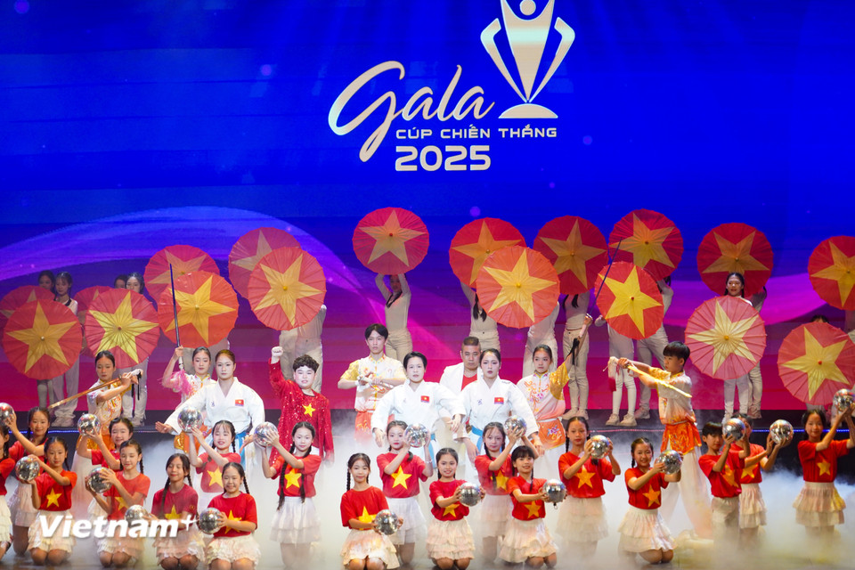 Tối 29/1, Gala trao giải Cúp Chiến thắng 2025 được tổ chức tại Nhà hát Hồ Gươm (Hà Nội), tôn vinh những thành tích nổi bật trong năm của thể thao Việt Nam. (Ảnh: Việt Anh/Vietnam+)