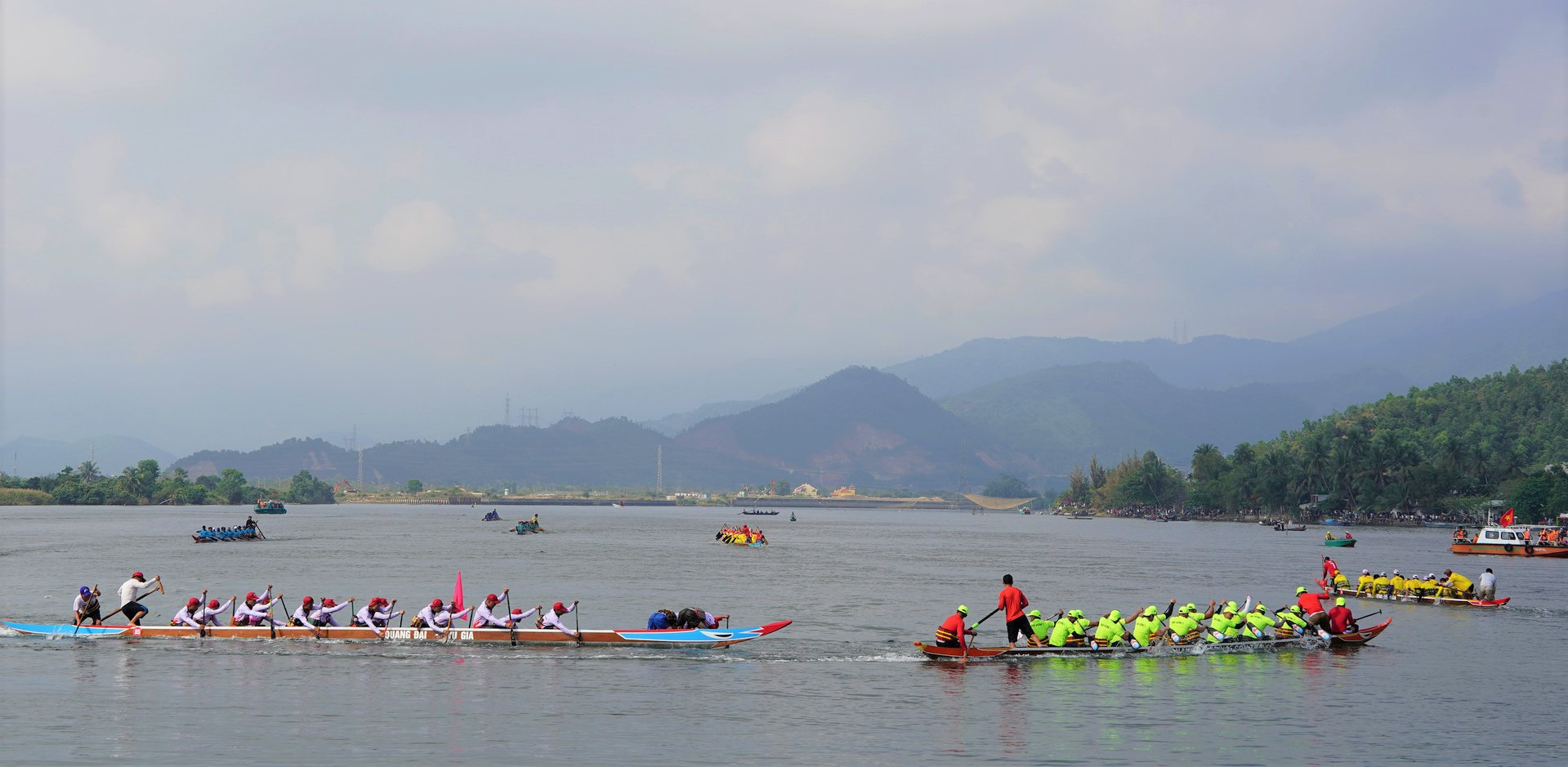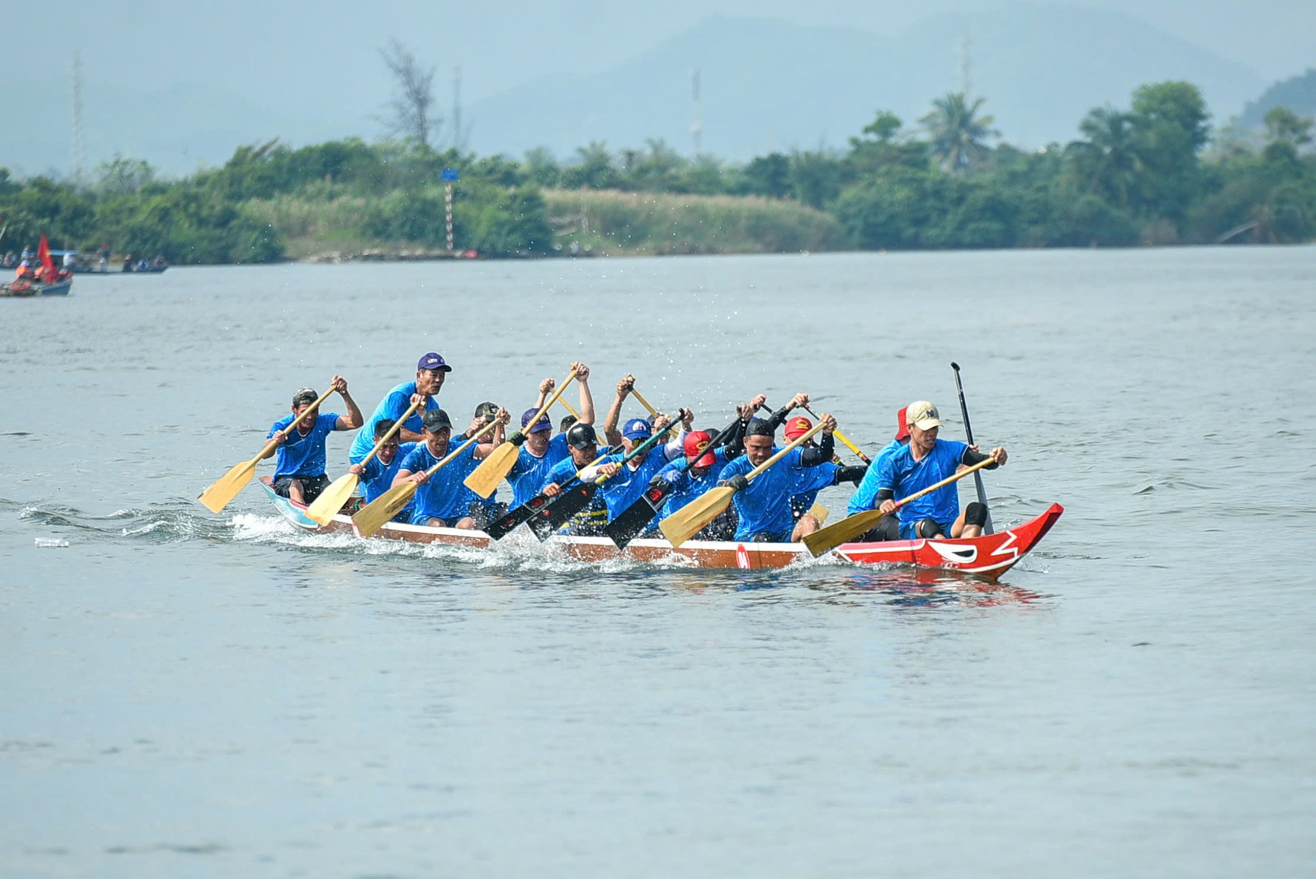 Các đội đua mang đến không khí sôi nổi với những màn tranh đua hấp dẫn trên sông Cu Đê. Ảnh: XUÂN SƠN