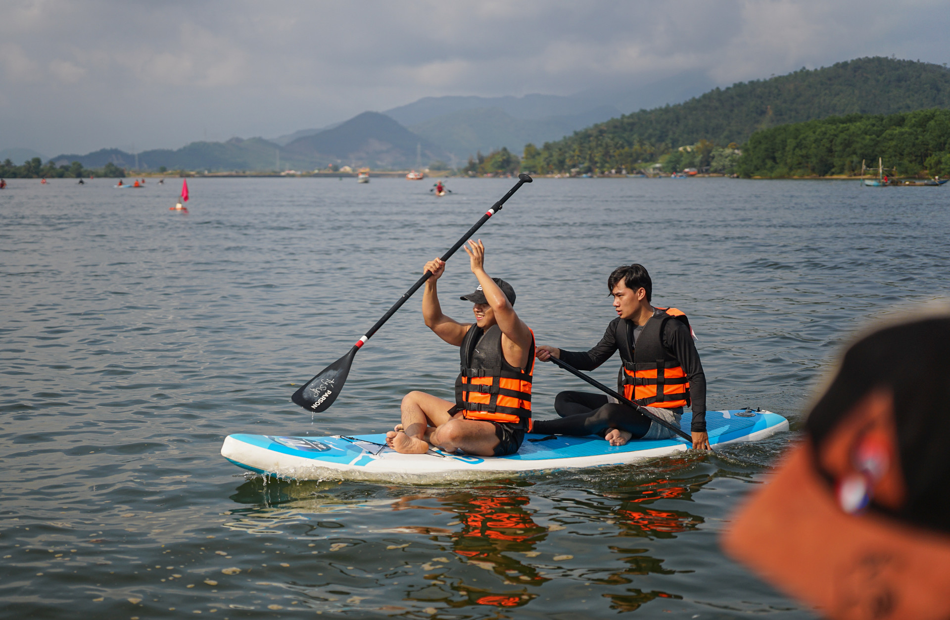 Cuộc thi chèo SUP trên sông Cu Đê thu hút nhiều vận động viên. Ảnh: XUÂN SƠN