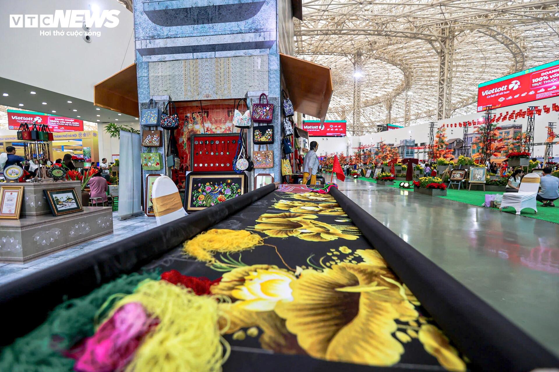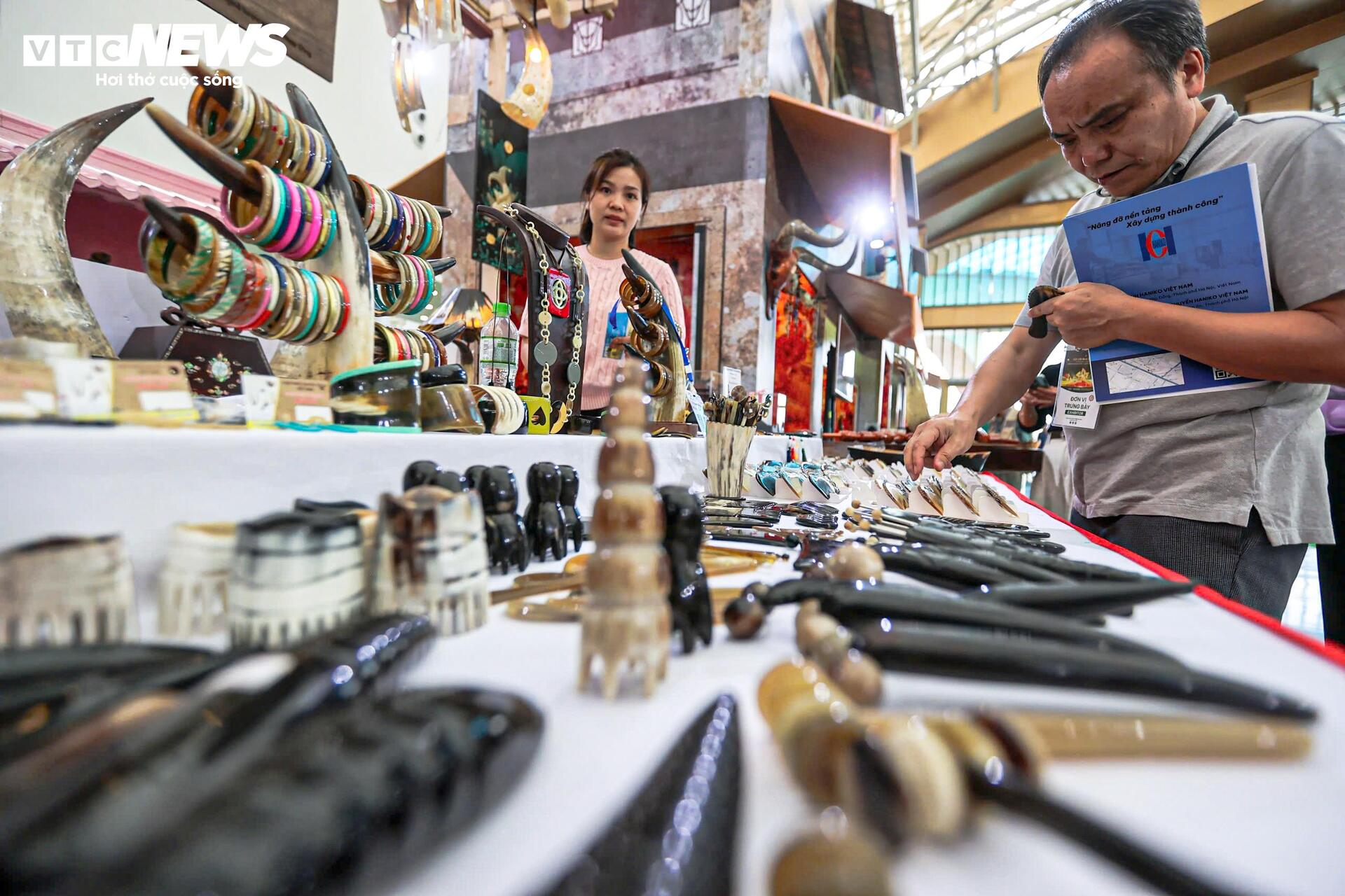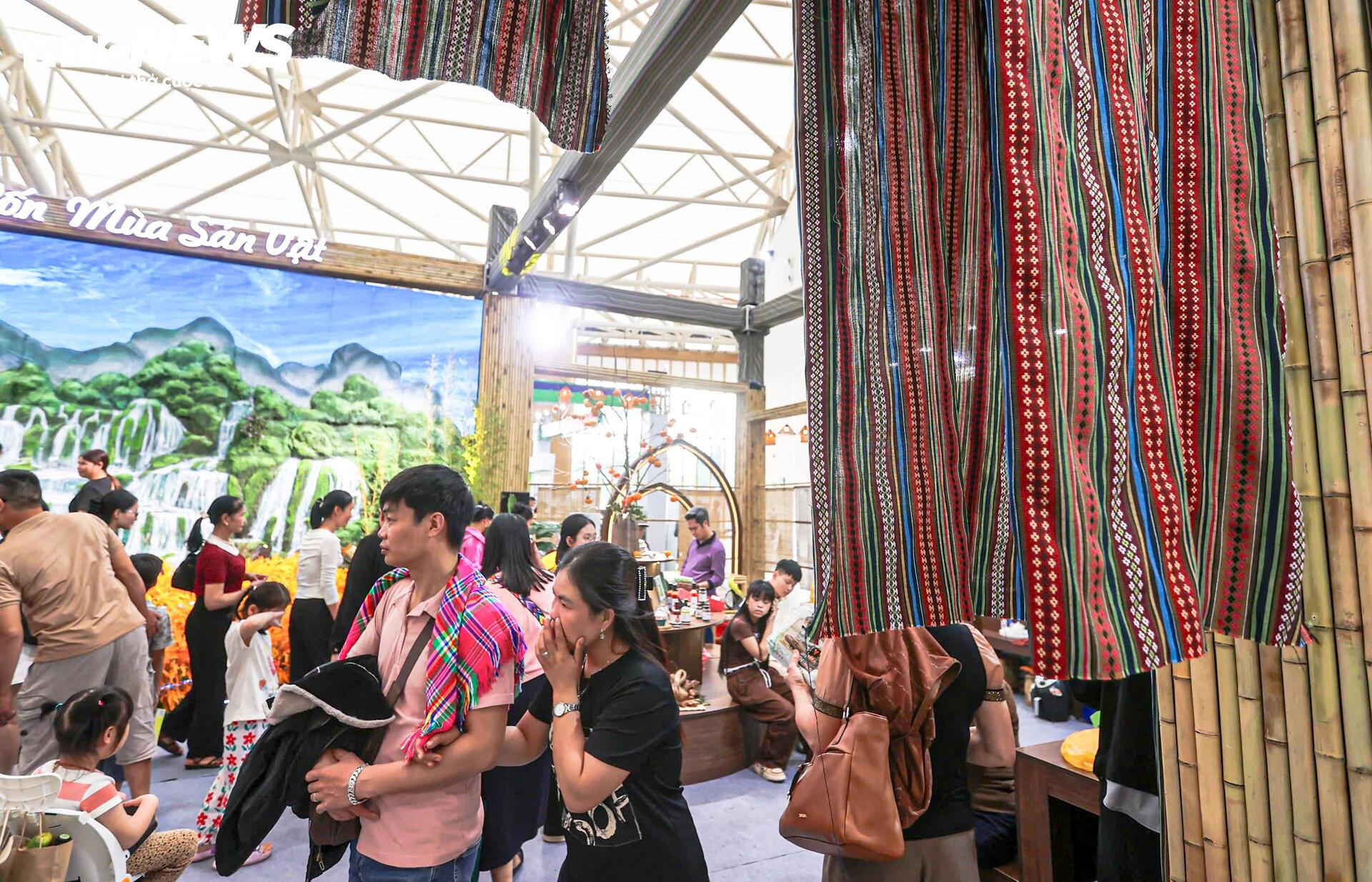 Giữa hàng nghìn gian hàng hiện đại, khu trưng bày của các tỉnh miền núi phía Bắc như Sơn La, Cao Bằng, Lai Châu hay Lào Cai trở thành tâm điểm thu hút du khách.