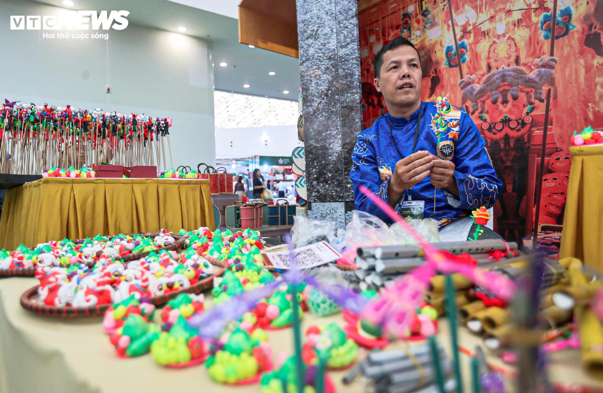 Ngoài những gian hàng vùng miền, khu trưng bày nghệ thuật truyền thống như tuồng, chèo, cải lương, nặn tò he, múa rối nước cũng khiến du khách thích thú. Những tiết mục biểu diễn ngắn của nghệ sĩ Nhà hát Múa rối Việt Nam thu hút đông đảo khán giả nhí, tạo nên góc hội chợ vừa vui tươi, vừa thấm đẫm hồn dân gian.