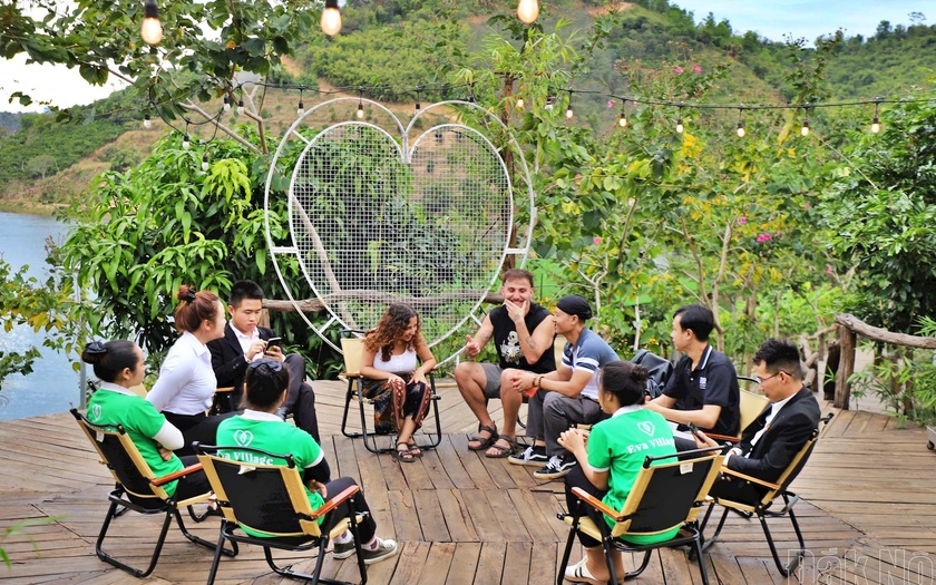 Khách du lịch nước ngoài trải nghiệm một làng sinh thái ở Đắk Nia, Gia Nghĩa. Ảnh: Báo Lâm Đồng