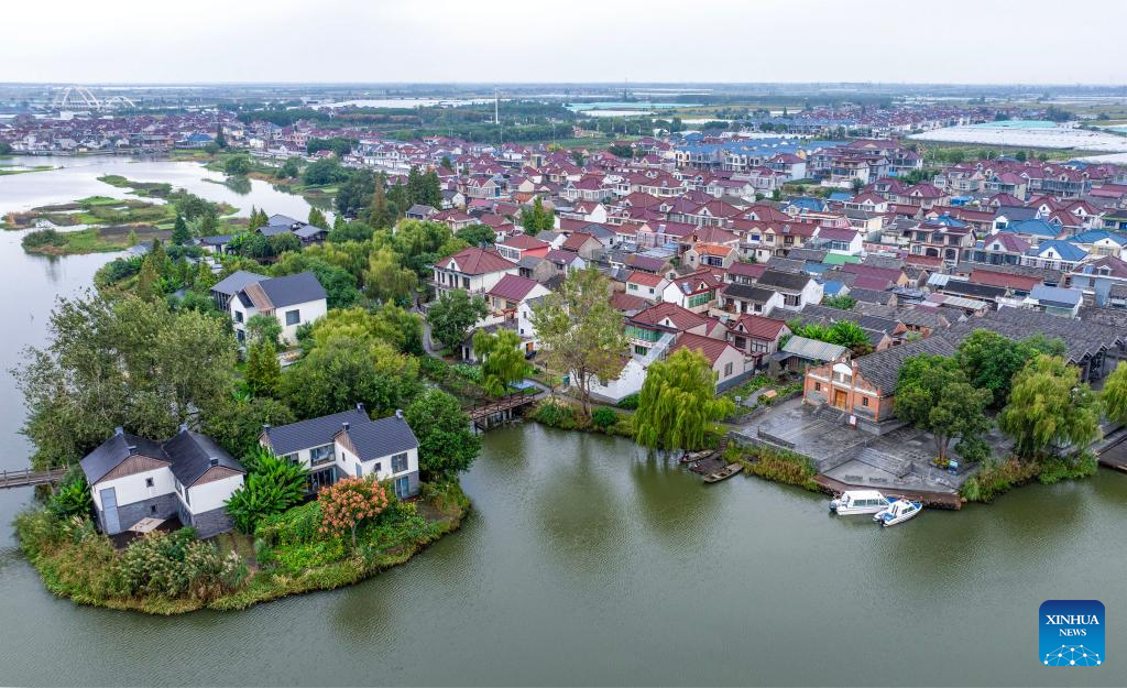 Một bức ảnh chụp bằng máy bay không người lái vào ngày 17/10/2025 cho thấy làng Đông Lạc ở thành phố Thái Châu, tỉnh Giang Tô, miền đông Trung Quốc.