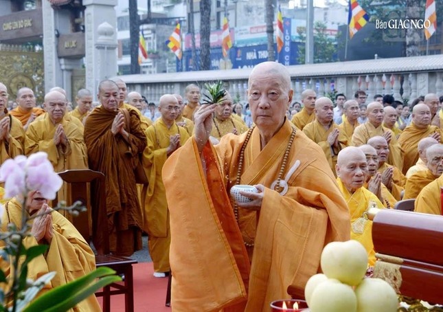Chư tôn Trưởng lão từ các tỉnh, thành trên cả nước về tham dự Lễ an vị vĩnh viễn xá-lợi Trái tim Bồ tát Thích Quảng Đức tại tháp Đa Bảo - công trình kỷ niệm Pháp nạn 1963 trong khuôn viên Việt Nam Quốc Tự