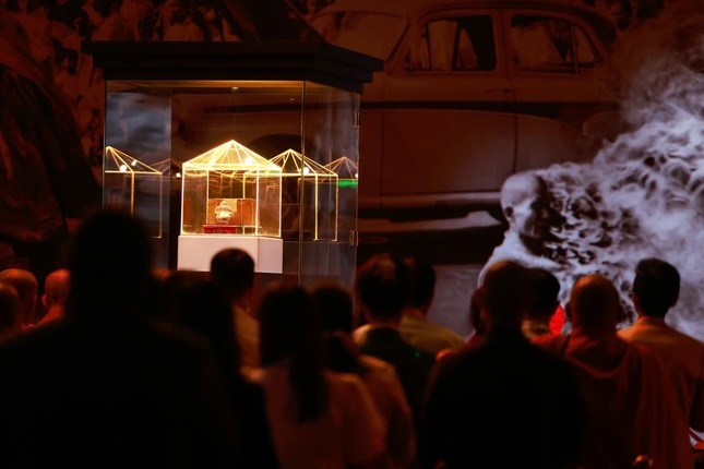 Xá lợi Trái tim Bồ tát Thích Quảng Đức tôn trí tại Việt Nam Quốc Tự, rất đông đại biểu quốc tế và Tăng Ni, Phật tử, đồng bào về chiêm bái.
