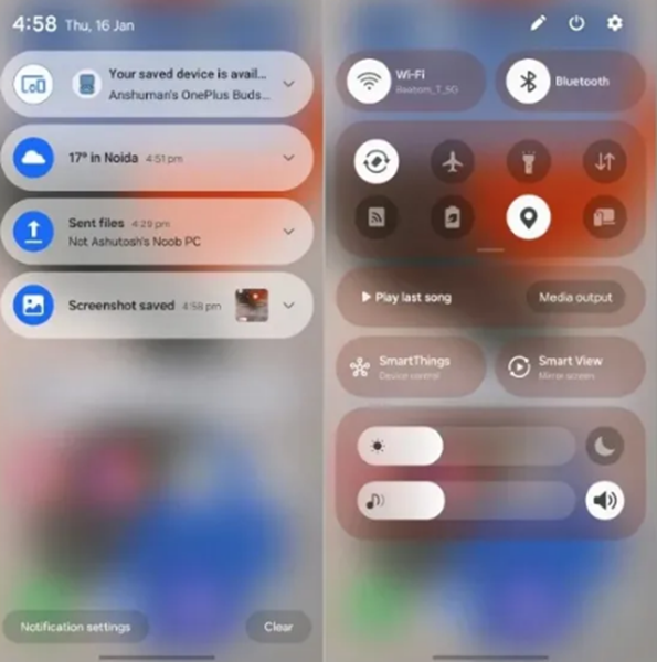 Phần Notification và phần Quick Settings sẽ tách thành 2 bảng riêng biệt - Ảnh: Beebom Gadgets