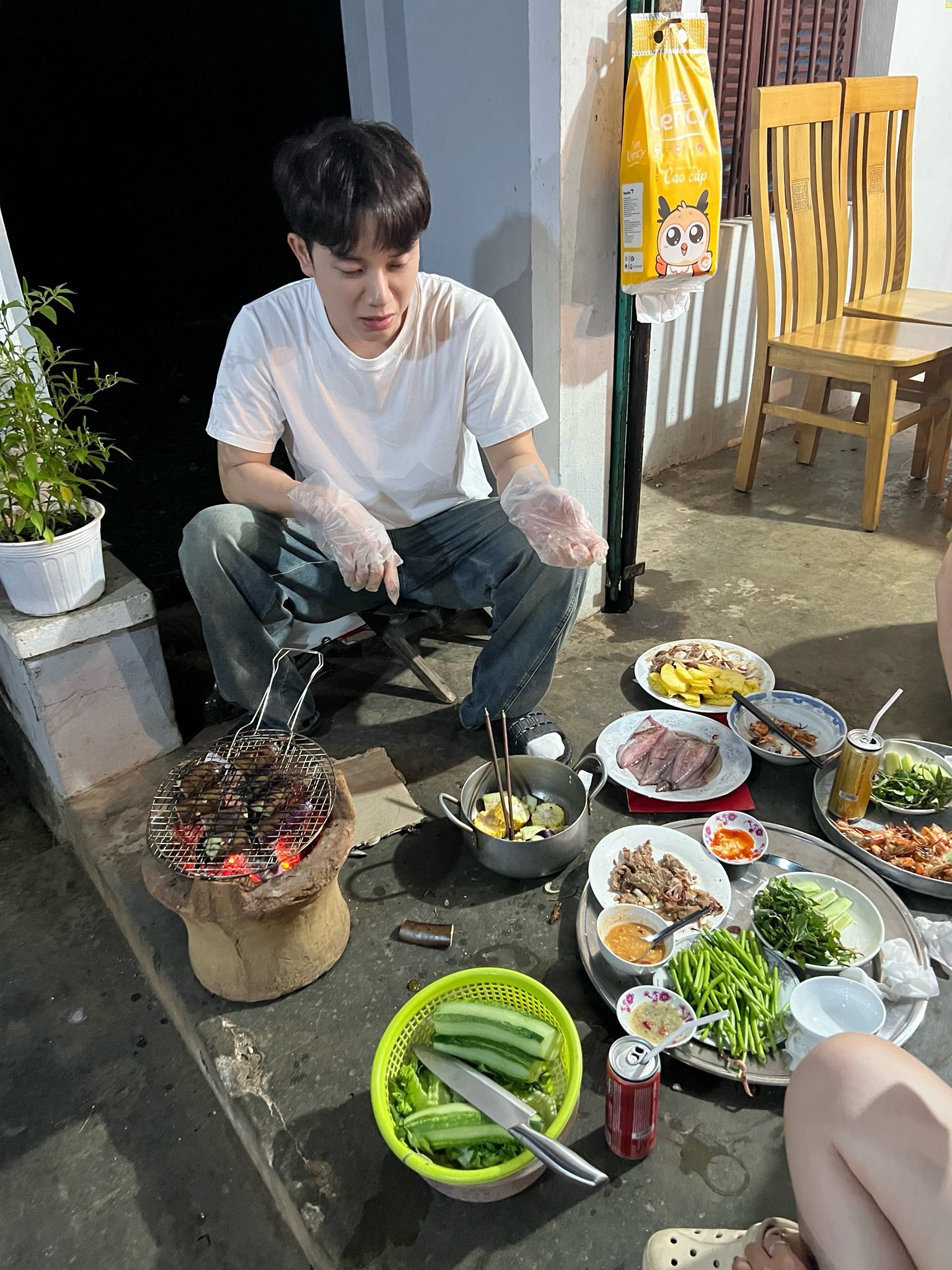 Trúc Nhân (ảnh trái) chia sẻ hình ảnh chuẩn bị đồ ăn kèm chú thích hài hước: “Tết ơi qua nhanh nhé”. Trong khi đó, Bảo Anh khoe ảnh mặc áo dài, đi chơi cùng con gái.