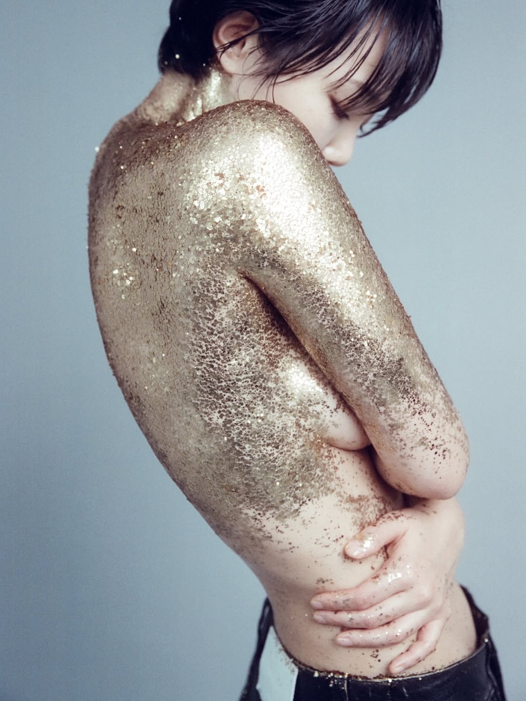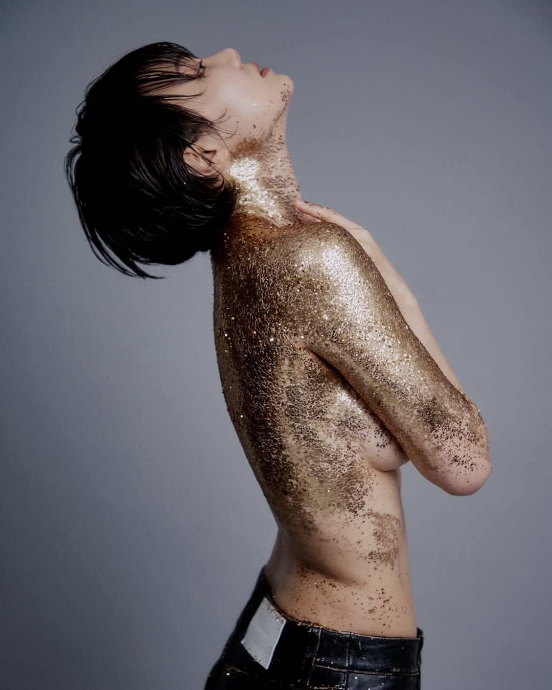 Trong bộ ảnh vừa được đăng tải, ngôi sao sinh năm 1994 bán khỏa thân và phủ kín toàn bộ cơ thể bằng nhũ vàng. Những bức ảnh được chụp dưới ánh sáng dịu nhẹ. Nữ diễn viên trang điểm nhẹ nhàng, để tóc ngắn cá tính, mạnh mẽ.
