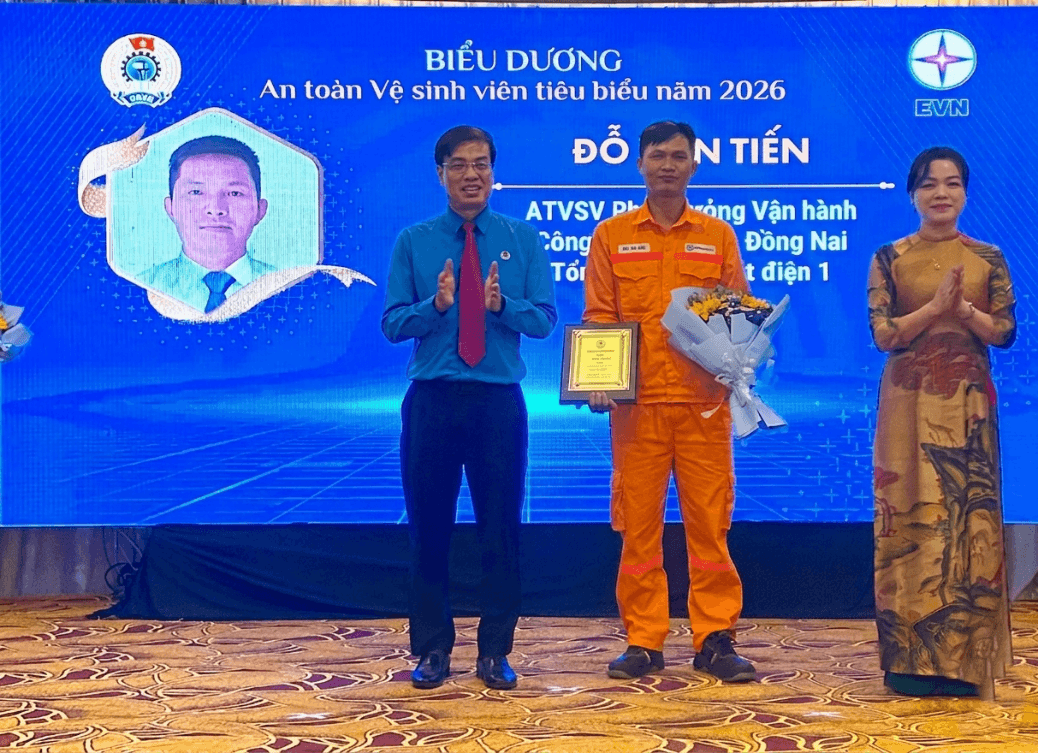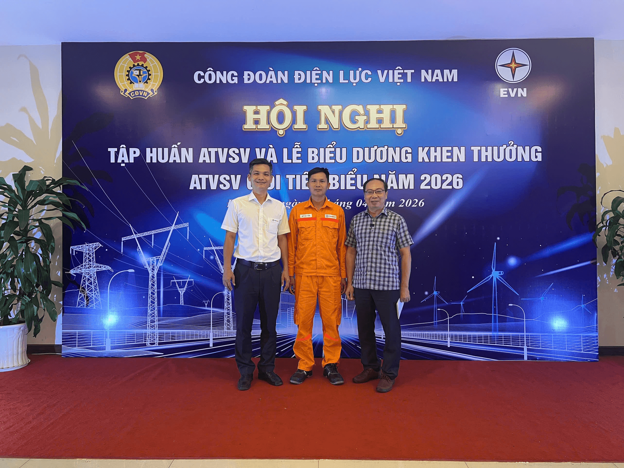 Anh Đỗ Văn Tiến vinh dự nhận biểu dương ATVSV tiêu biểu năm 2026 do Công đoàn Tập đoàn Điện lực Việt Nam tổ chức