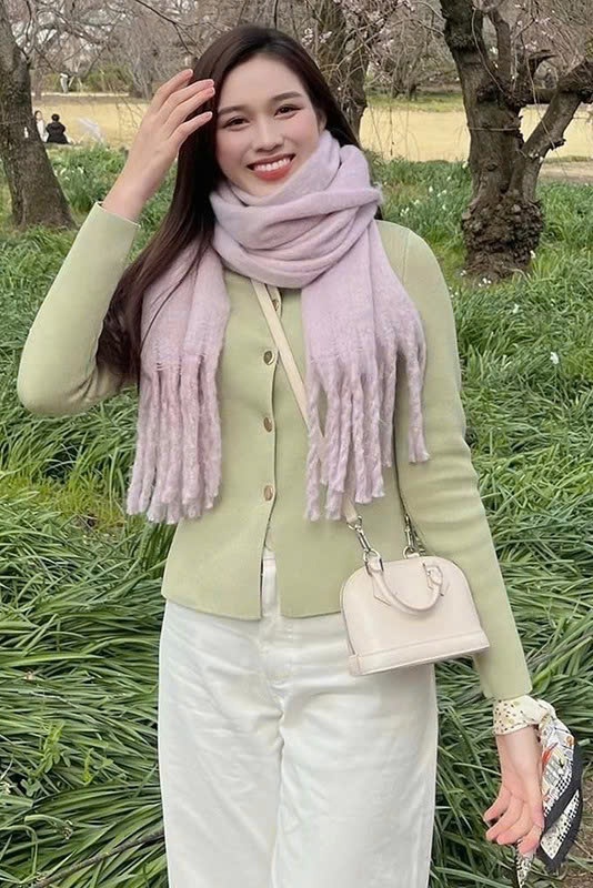 Trước khi công khai, hoa hậu và bạn trai rộ tin hẹn hò từ năm 2024. Cả hai thường xuyên được bắt gặp du lịch trong và ngoài nước. Trong chuyến du lịch Nhật Bản của Đỗ Thị Hà hồi tháng 3/2024, khán giả nhận ra Viết Vương cũng check-in ở góc tương tự. Người đẹp nhiều lần "úp mở" về chuyện tình cảm nhưng giấu kín danh tính người bạn đời. Ảnh: Mạng xã hội.