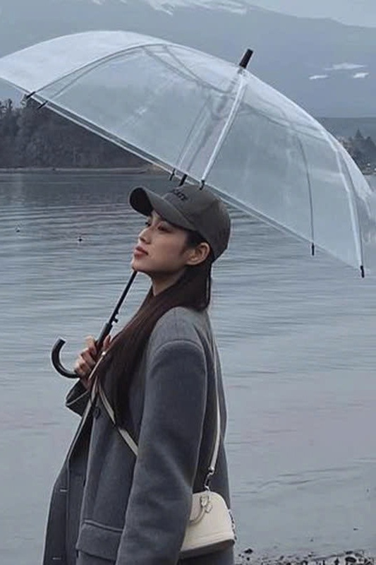 Hoa hậu Đỗ Thị Hà và bạn trai doanh nhân cùng cầm ô trong suốt, tạo dáng khi ngắm núi Phú Sĩ (Nhật Bản). Dù nhiều lần vướng tin đồn hẹn hò, cả hai giữ kín chuyện tình cảm. Ảnh: Mạng xã hội.