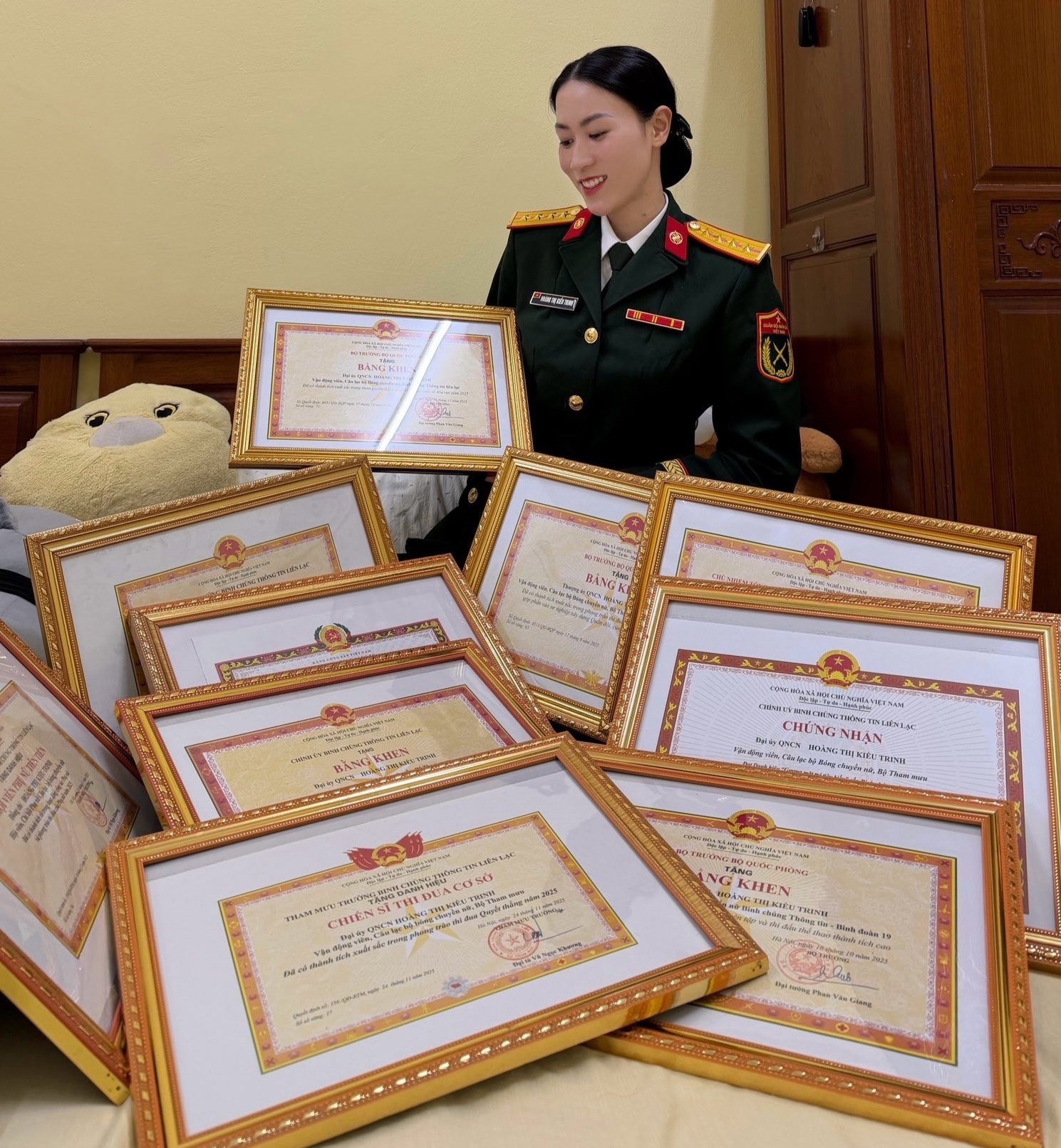 Tối 26/12, “hoa khôi bóng chuyền” Hoàng Thị Kiều Trinh gây chú ý khi đăng tải bức ảnh khoe loạt bằng khen mình đạt được. Cô viết ngắn gọn: “Tổng kết 2025”.