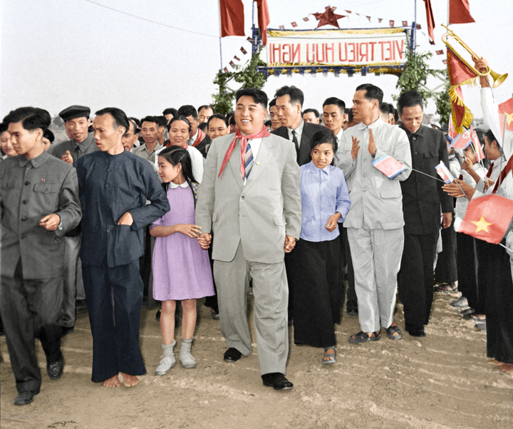 Chủ tịch Hồ Chí Minh tiếp Chủ tịch Kim Nhật Thành tại Phủ Chủ tịch và sau đó cùng đến khu nghỉ Hồ Tây, Nhà máy dệt Nam Định, một trong những cơ sở sản xuất công nghiệp đi đầu ở miền Bắc thời kỳ đó.