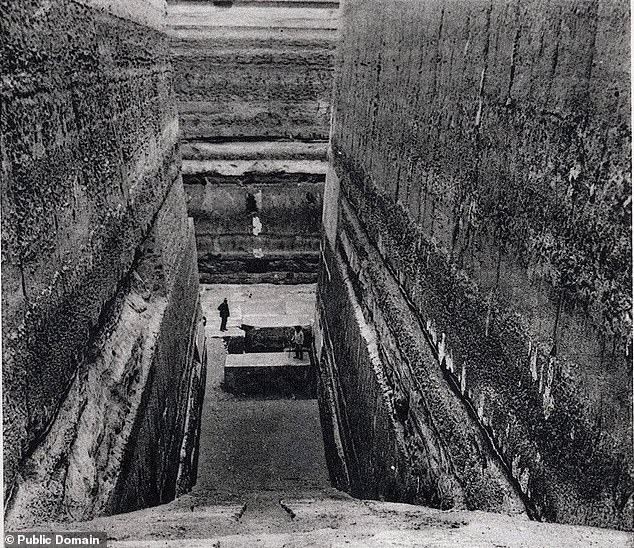 Nhà khảo cổ học Alessandro Barsanti lần đầu tiên khai quật tại Zawyet El Aryan, Ai Cập vào đầu những năm 1900 và phát hiện ra một hố hình chữ T khổng lồ được khoét vào đá vôi rắn, sâu gần 31m và được lót bằng những khối đá granite khổng lồ.