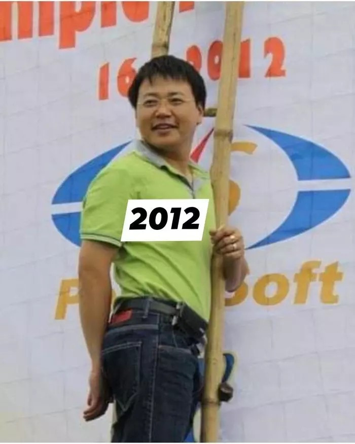 Ở bức ảnh khi 31 tuổi, Shark Bình trẻ trung với áo phông, quần jeans tham gia một sự kiện. Ảnh: FBNV
