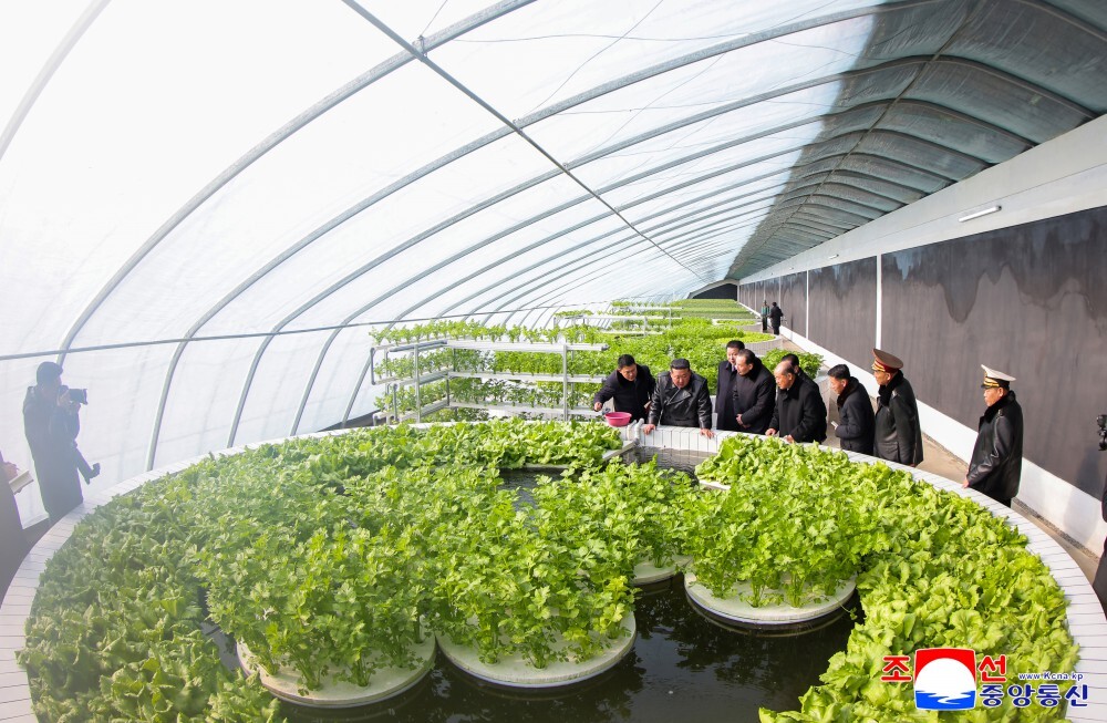 Nhà lãnh đạo Triều Tiên Kim Jong-un cùng các cán bộ lãnh đạo tham quan trang trại nhà kính ở Sinuiju.
