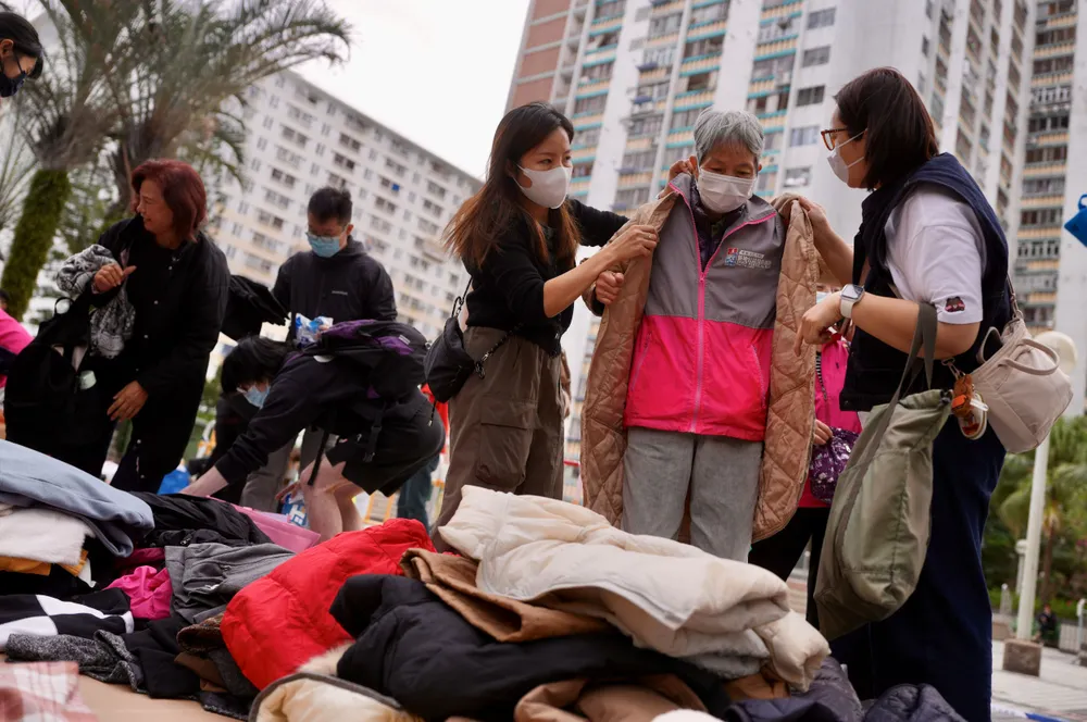 Người dân quyên góp quần áo hỗ trợ nạn nhân vụ cháy. Ảnh: Adam Lam/China Daily