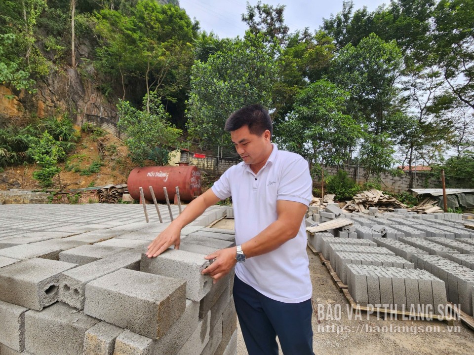 Anh San kiểm tra chất lượng gạch không nung trước khi xuất bán cho khách hàng