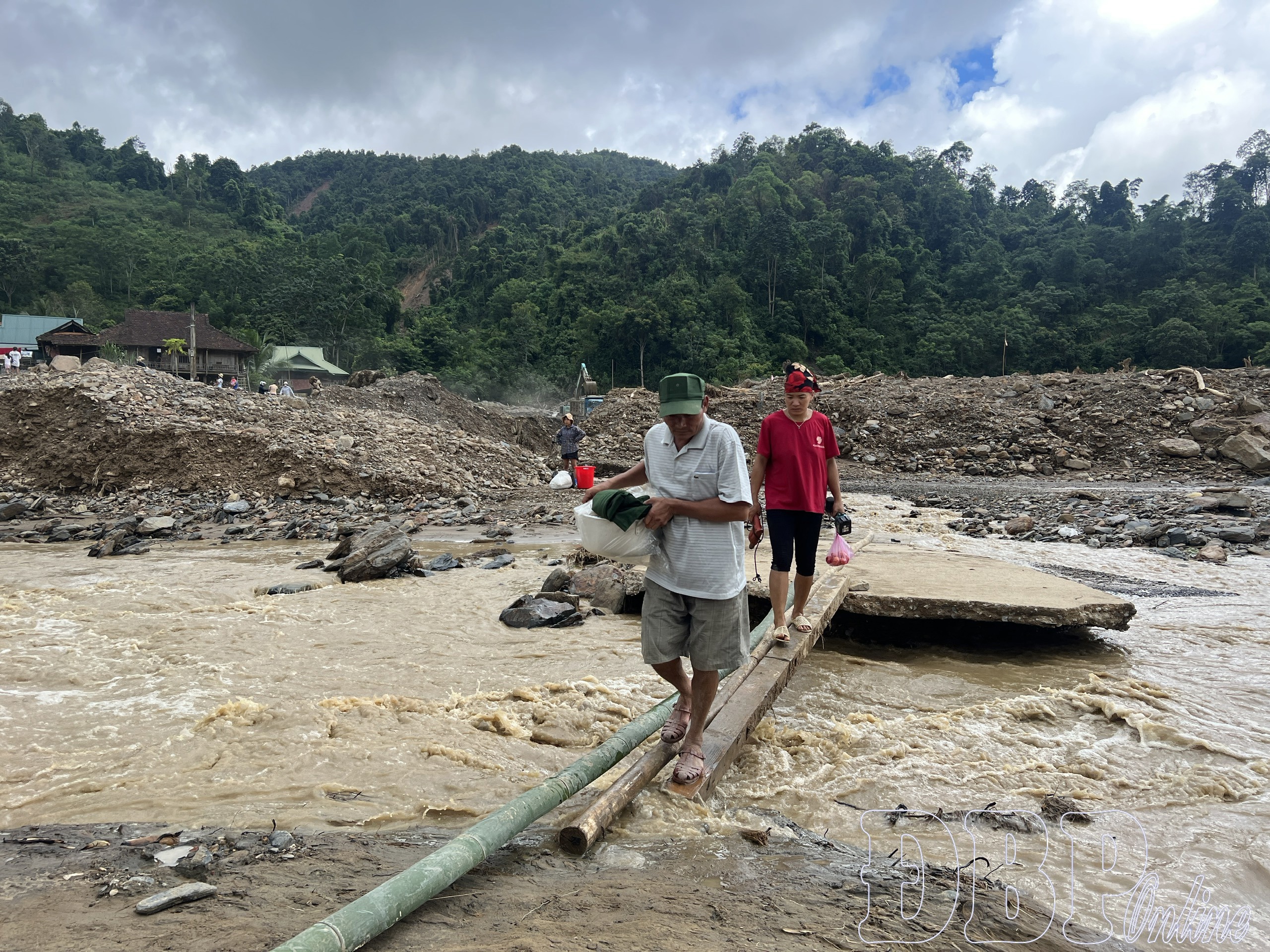 Nhà cửa của chính mình bị sạt lở, nhưng trong khoảnh khắc sinh tử ấy, Bí thư Chi bộ bản Lĩnh Lường Văn Bình vẫn gác lại nỗi lo riêng, dồn toàn lực để lo cho dân. Anh Bình nhớ lại: “Khoảng 1 giờ sáng ngày 25/7, khi dòng suối bắt đầu dâng nước, tôi lập tức huy động các đảng viên trong chi bộ, cùng trưởng bản và lực lượng dân quân đến từng hộ có nhà gần suối, hỗ trợ bà con di dời tài sản. Chúng tôi hô hào bà con sơ tán lên khu vực cao an toàn, đồng thời tổ chức rà soát, điểm danh từng nhân khẩu để không một ai bị bỏ sót. Cả đêm trắng, anh em trong bản phối hợp với lực lượng chức năng túc trực, tìm kiếm người mất tích, dẫn dắt bà con trong cơn hoạn nạn, quyết không để ai bị bỏ lại phía sau”.