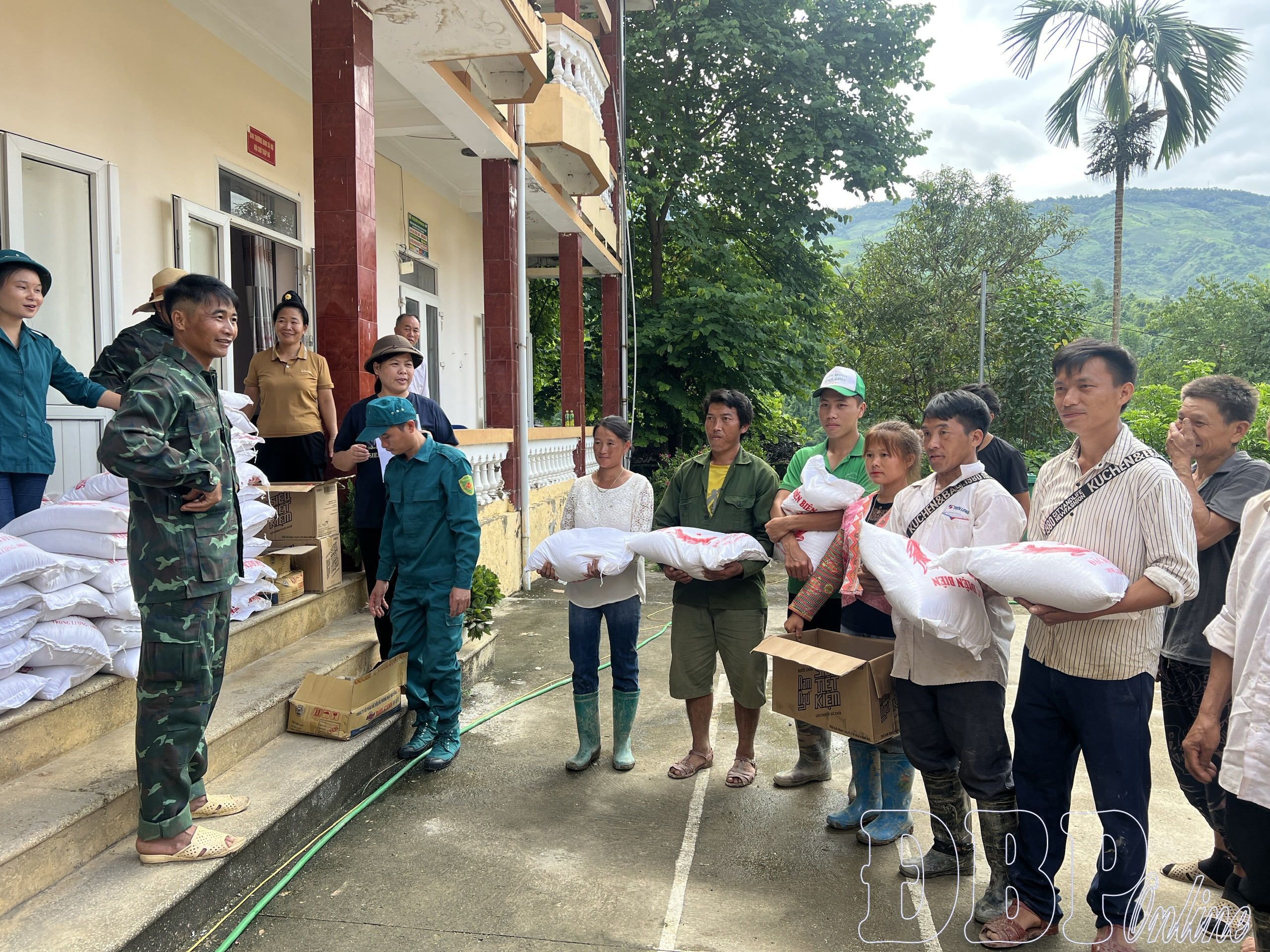 Người dân nhóm Huổi Ké nhận hỗ trợ lương thực, nhu yếu phẩm. (Ảnh chụp đầu tháng 8/2024)