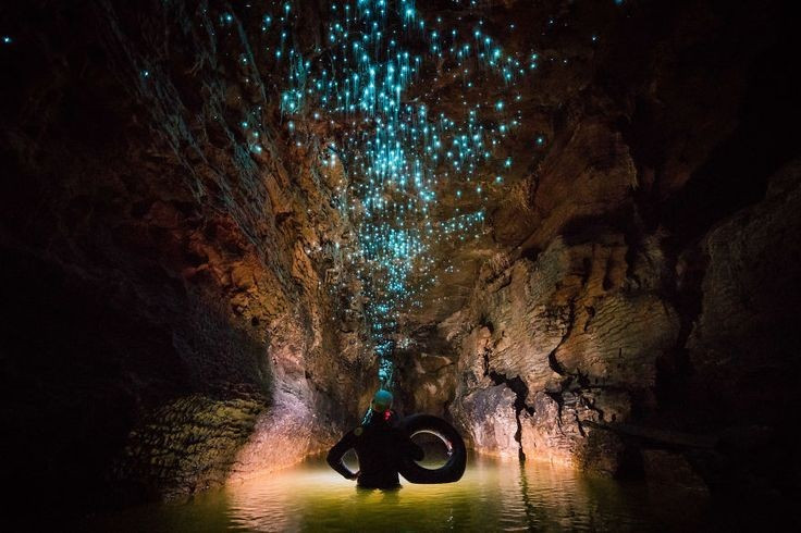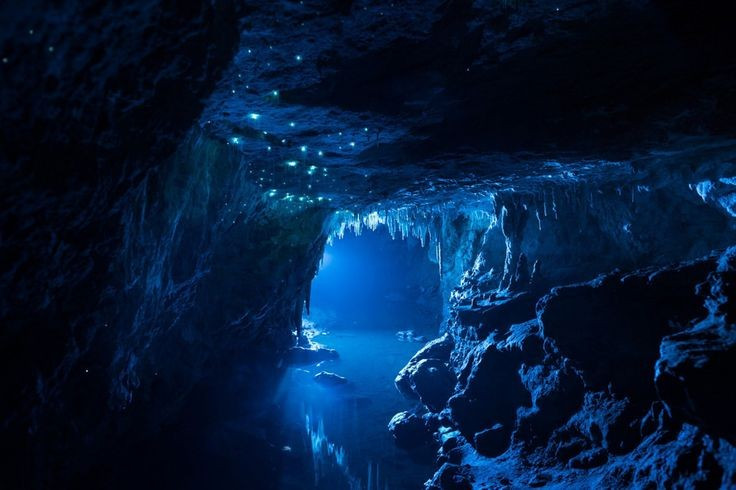 Ngôi nhà của hàng nghìn côn trùng phát sáng. Hang Waitomo là nơi sinh sống của loài ruồi nấm đặc hữu Arachnocampa luminosa, chỉ có ở New Zealand, phát sáng bằng phản ứng sinh học để thu hút con mồi. Ảnh: Pinterest.