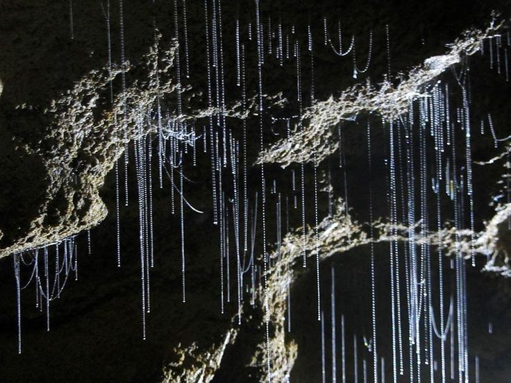 Đom đóm thực chất là ấu trùng. “Đom đóm” Waitomo thực chất là ấu trùng của loài ruồi nấm đã đề cập. Chúng phát sáng để dụ côn trùng bay vào những sợi tơ dính do chính mình giăng ra. Ảnh: Pinterest.