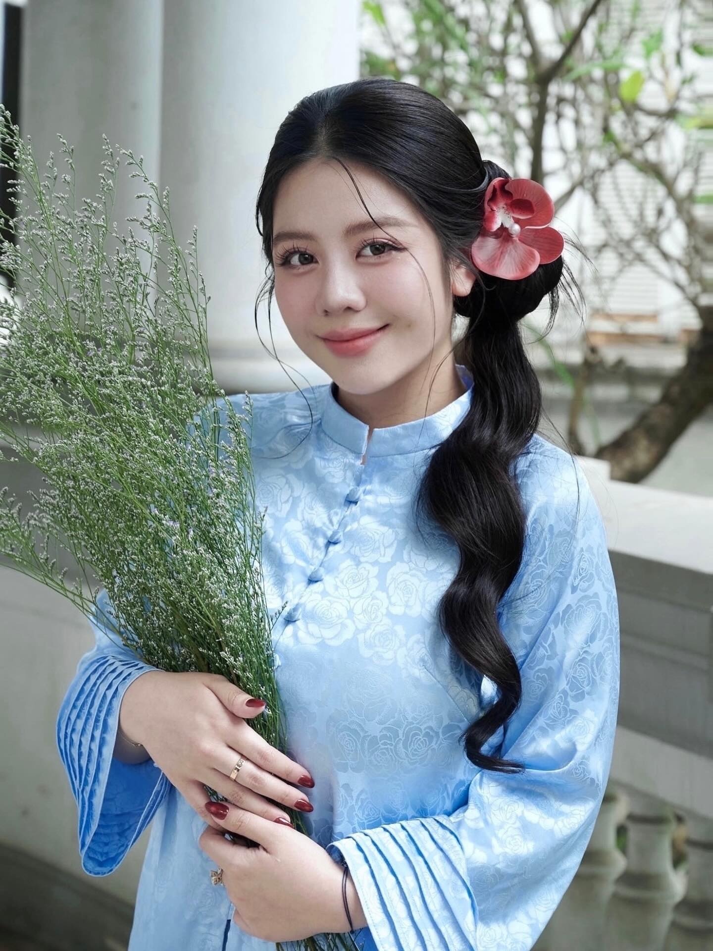 Rich kid Thảo Nhi Lê khoe ảnh áo dài và chia sẻ ước nguyện cho năm mới. "Mùng 1 Tết Nhi chọn mặc thật xinh, cười thật nhiều và bắt đầu năm mới bằng sự biết ơn, bình yên và thật nhiều hy vọng", cô viết. Ảnh: thaonhile/Instagram.