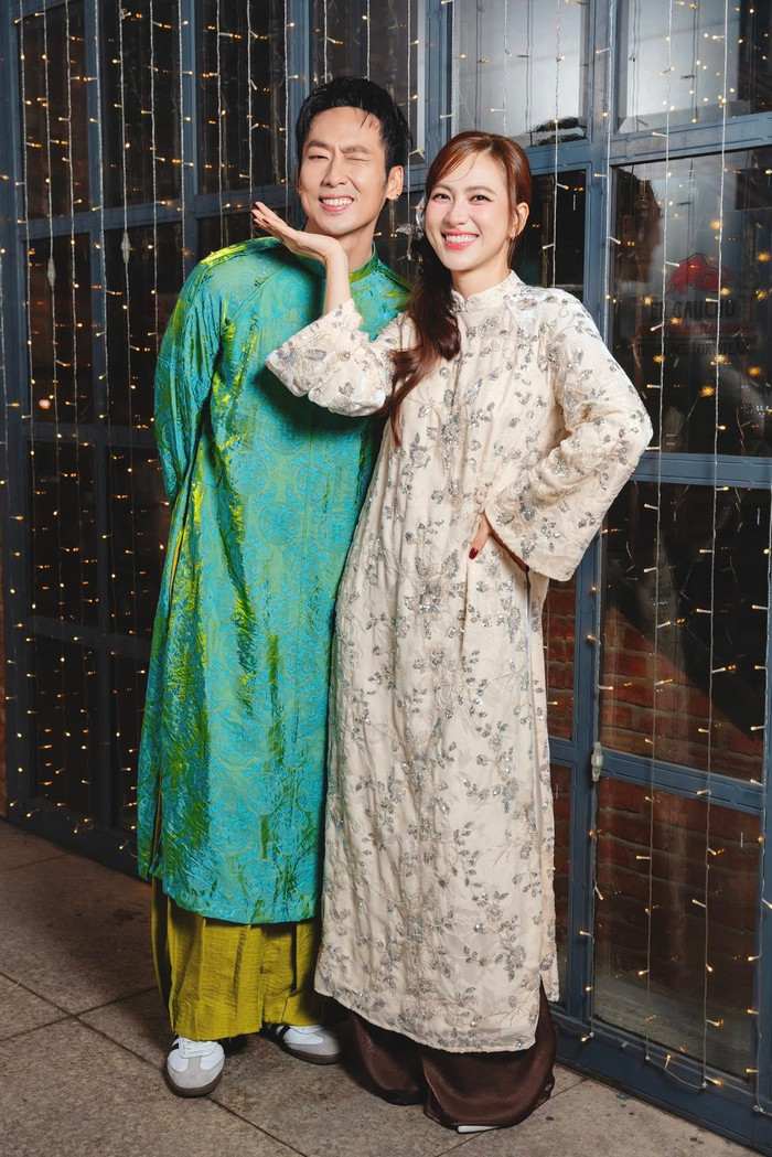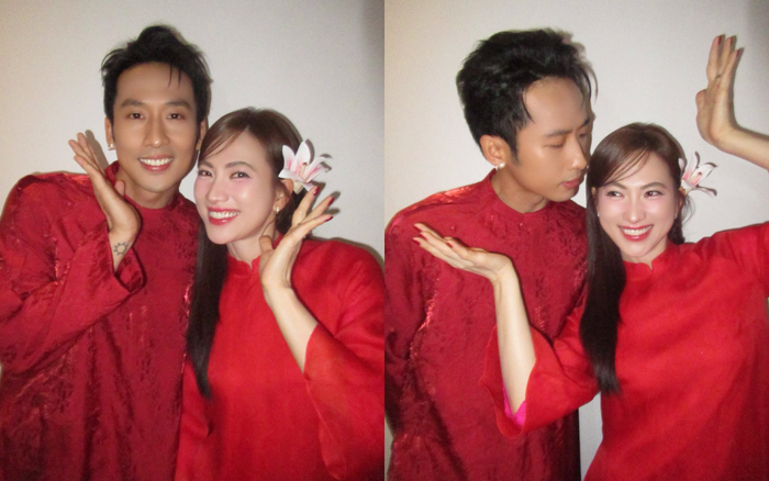 Trong bộ ảnh, cả hai cùng diện áo dài đỏ nổi bật, tạo nên khung hình rực rỡ, đậm chất xuân. Không chỉ đứng cạnh nhau thân thiết, cặp đôi còn thoải mái tạo dáng tình tứ, ngọt ngào khiến người hâm mộ không khỏi thích thú. Nữ diễn viên hào hứng chia sẻ: “Nay đoàn của tụi em được đi giao lưu ở các cụm rạp với quý khán giả xôm dữ lắm. Hẹn gặp nhau chúc Tết tưng bừng nha quý vị ơi”.