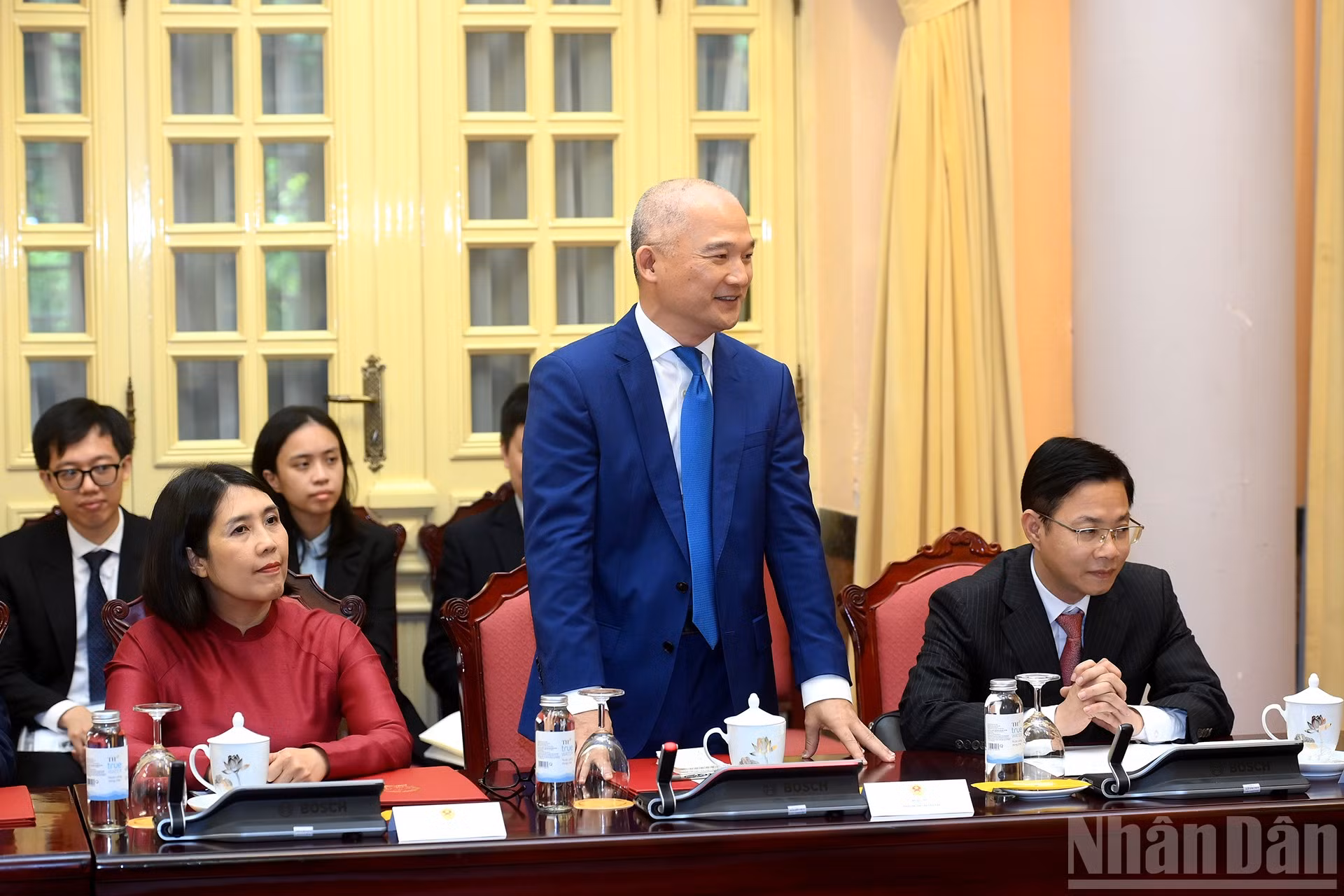 Tổng Bí thư, Chủ tịch nước Tô Lâm nói chuyện với các đại sứ vừa được trao quyết định bổ nhiệm. (Ảnh: ĐĂNG KHOA)