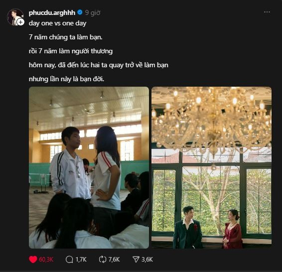 Hình ảnh và bài viết công bố "bạn đời" của Phúc Du.