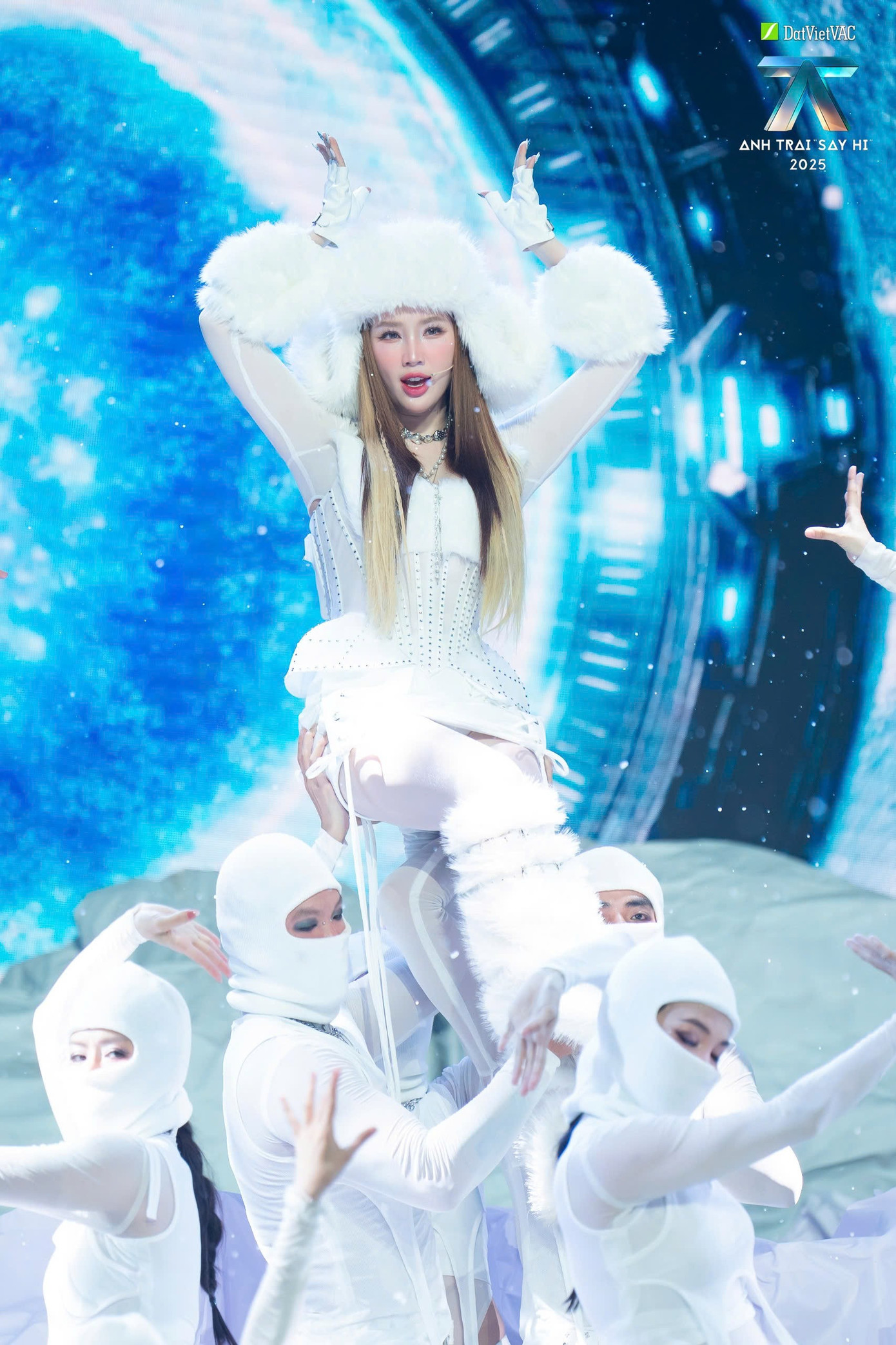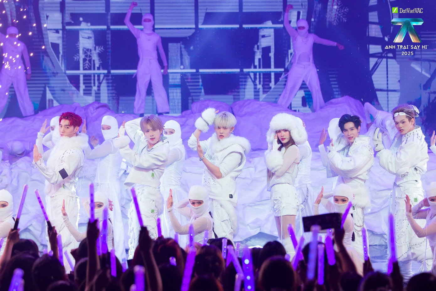 Mang đến sân khấu ấn tượng không kém là team và khách mời . Với bối cảnh tảng băng khổng lồ, hiệu ứng tuyết rơi và tông trắng chủ đạo, nhóm kể lại câu chuyện tình “băng giá” qua ca khúc Make Up.