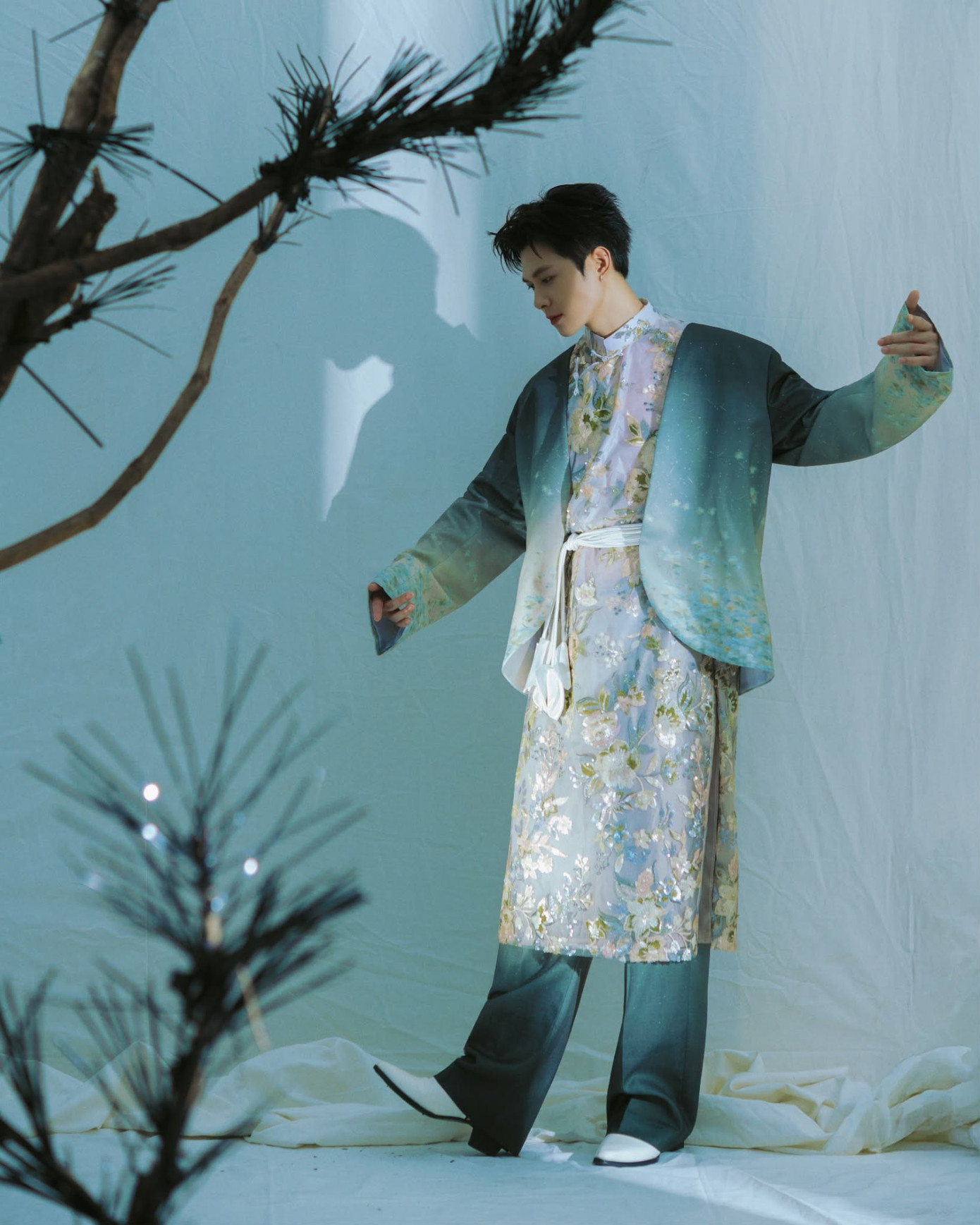 Không chọn những thiết kế thông thường, Anh Tú Atus phá cách với áo khoác ngoài đi cùng thắt eo lạ mắt. Trong bộ ảnh, nam diễn viên một lần nữa khẳng định gu thời trang “không phải dạng vừa” của mình khi thử sức với trang phục họa tiết. Anh khéo lựa chọn điểm nhấn hoa nhí vừa tinh tế vừa trẻ trung.