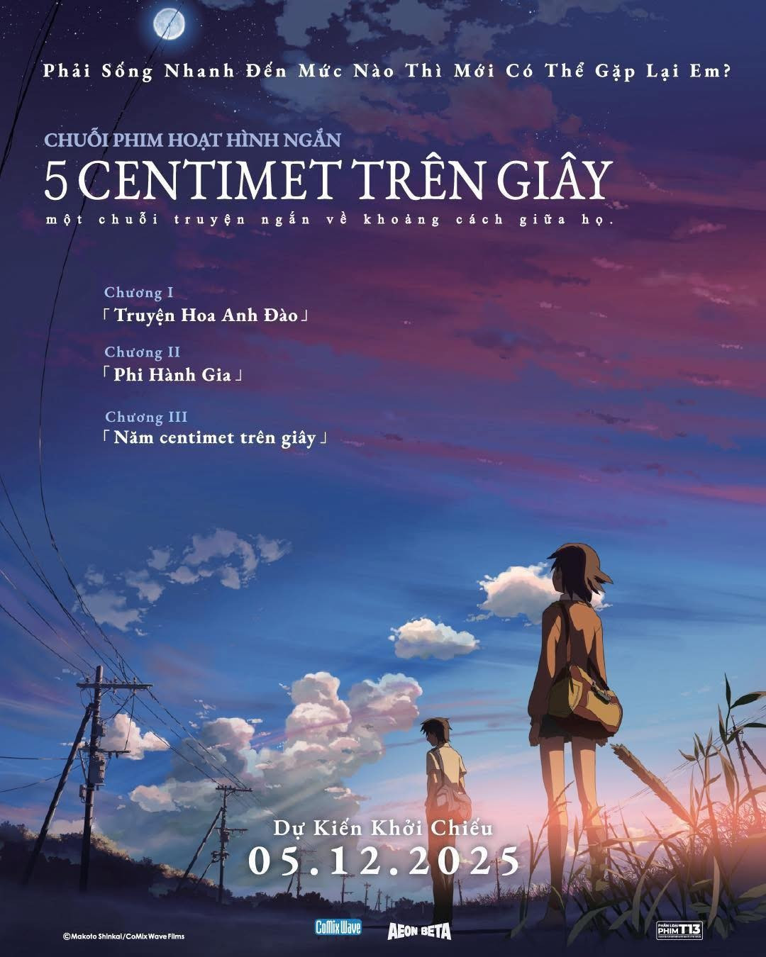 Theo thông tin chính thức từ các hệ thống rạp chiếu, phim điện ảnh (5 Centimeters per Second) dự kiến ra mắt khán giả Việt Nam với phiên bản đặc biệt từ ngày 5/12/2025. Đây là lần đầu tiên bộ anime bi kịch lãng mạn này được phát hành rộng rãi tại các cụm rạp thương mại lớn trên toàn quốc. Trước đây, tác phẩm chủ yếu chỉ được trình chiếu giới hạn trong khuôn khổ các sự kiện văn hóa hoặc học thuật.