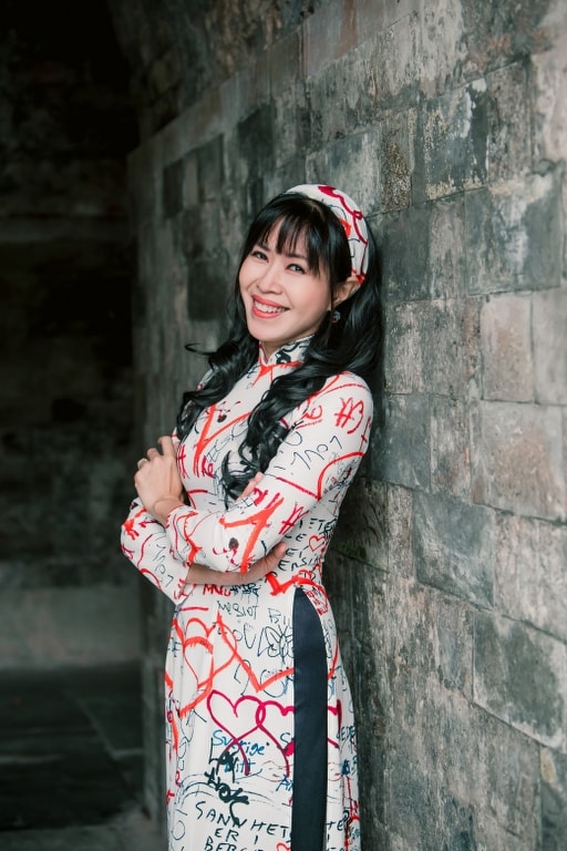 Linh Linh với tà áo dài truyền thống khi chụp ảnh lưu niệm - Ảnh: NVCC