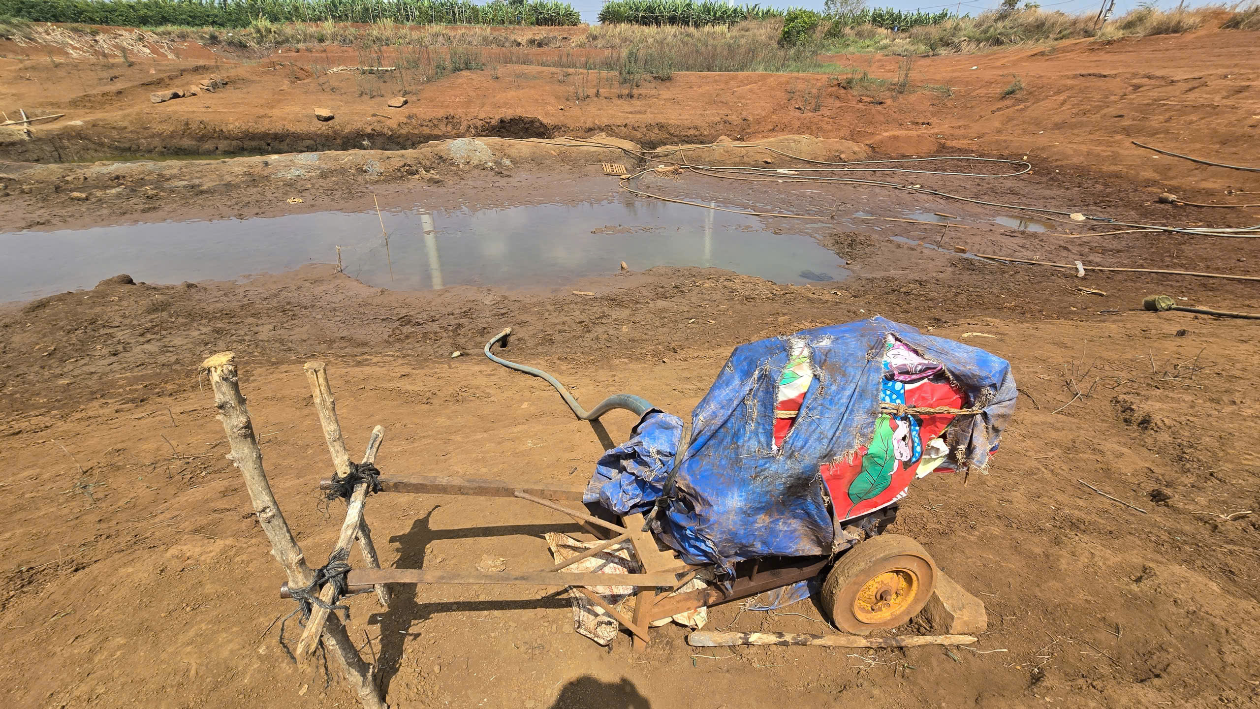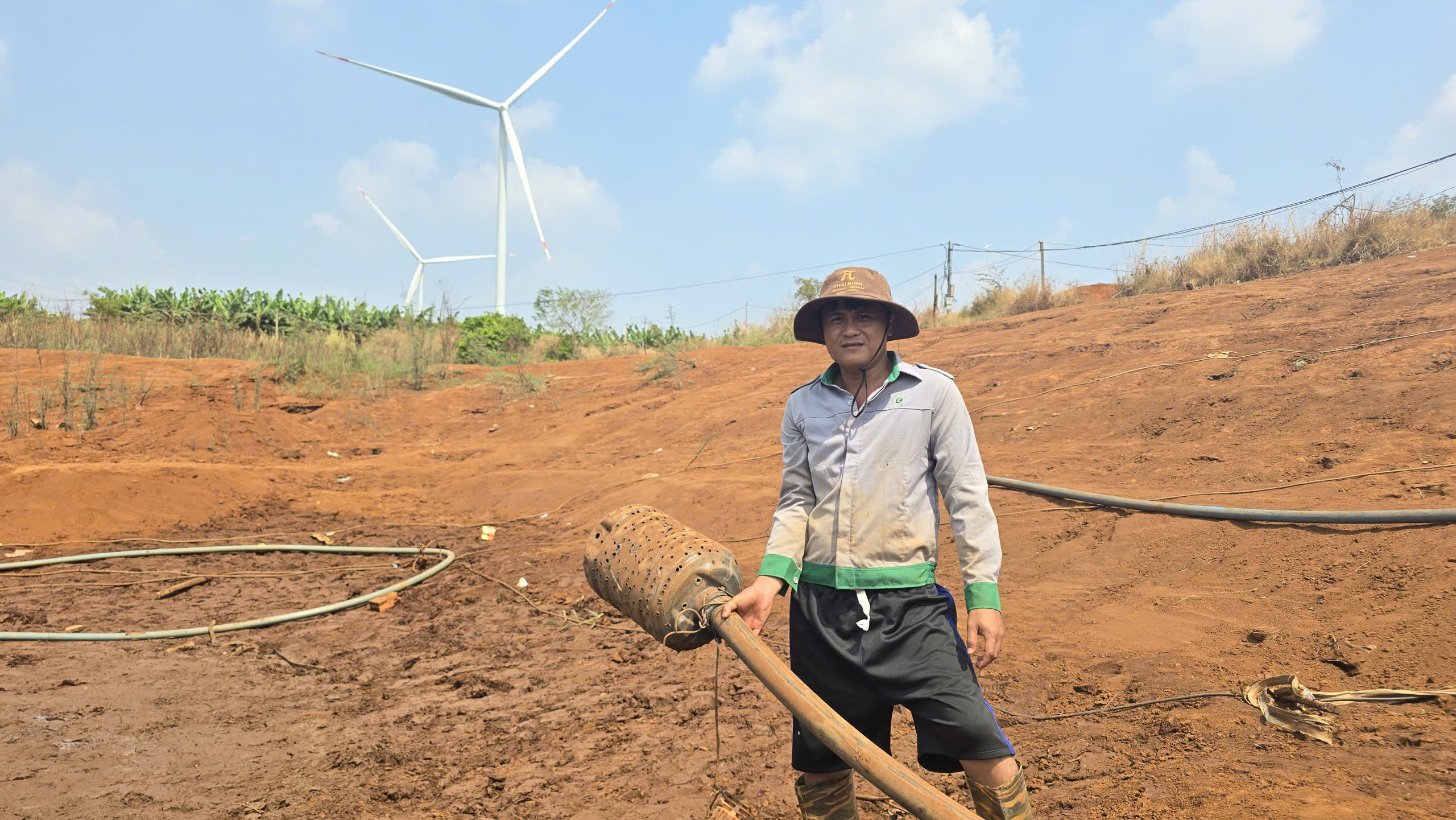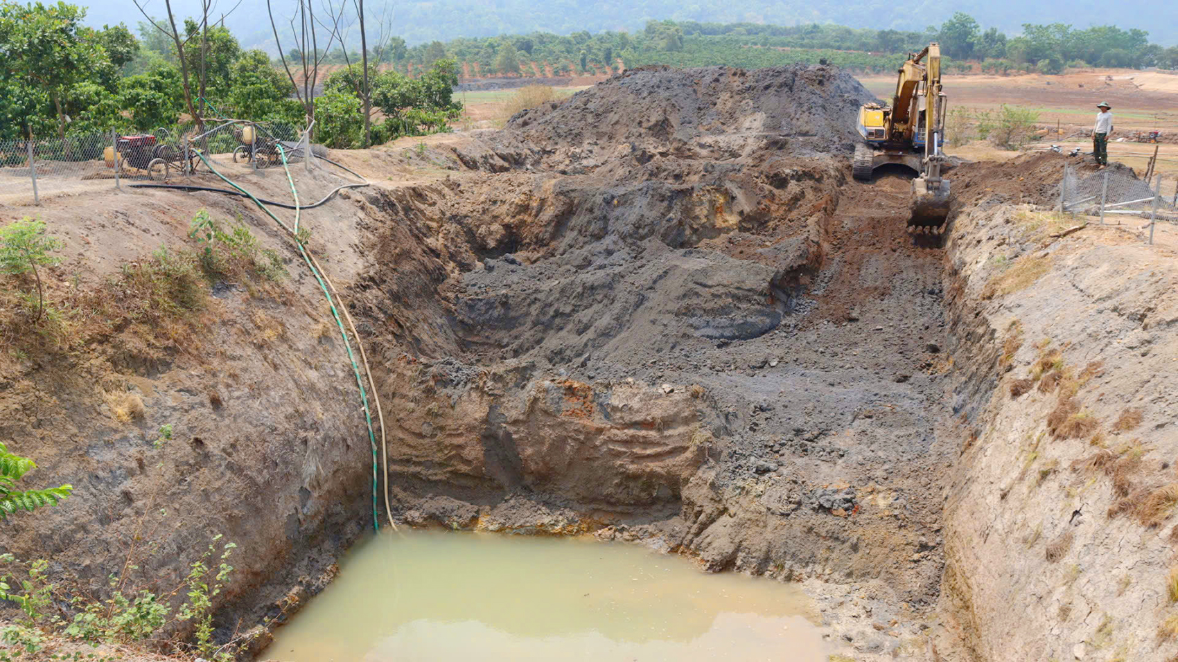 Những ngày cuối tháng 4-2026, nắng hạn vẫn tiếp tục diễn biến phức tạp tại tỉnh Gia Lai. Nhiều khu vực ao hồ, suối cạn trơ đáy gây thiếu hụt nguồn nước tưới nghiêm trọng. Để ứng phó, nông dân dùng máy móc sâu giữa hồ, chắt chịu từng giọt nước cứu cây...