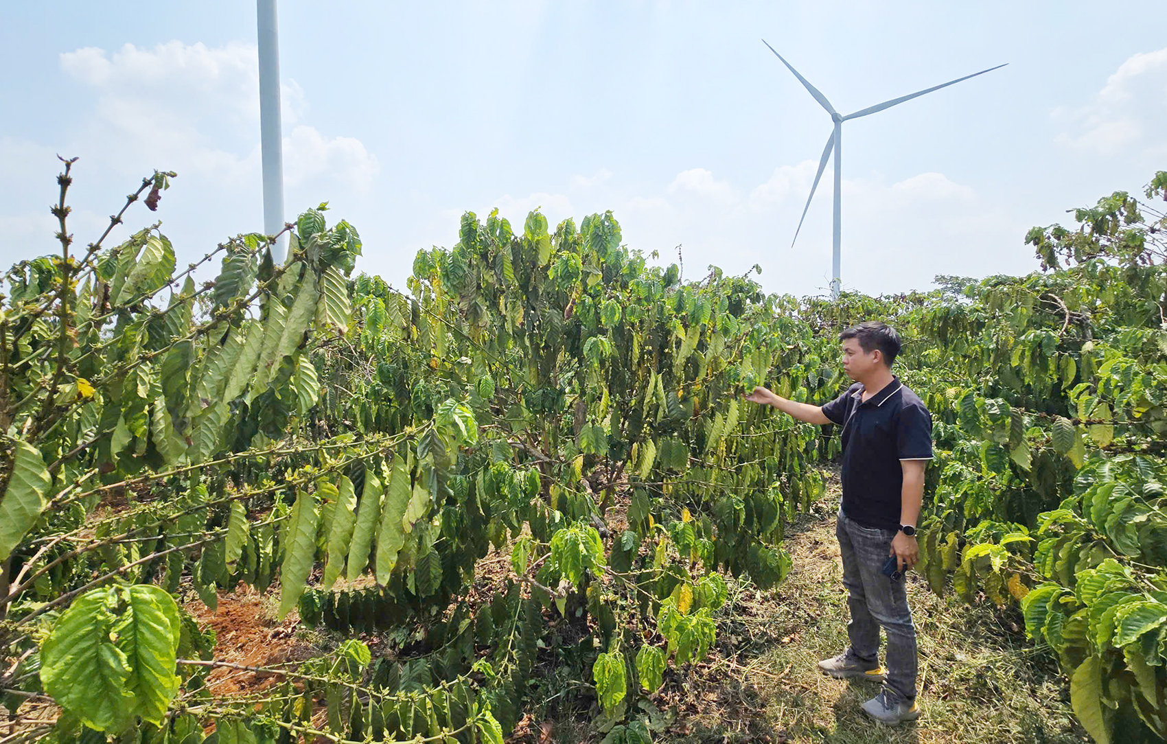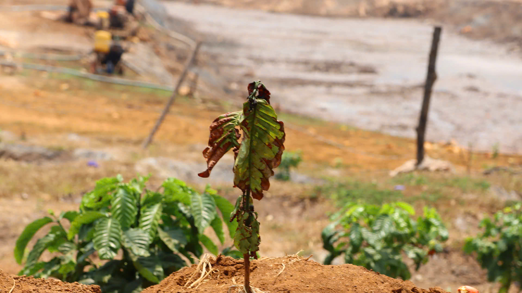 Một số cây cà phê nhỏ thiếu nước không kịp cứu, liền bị cháy lá non.