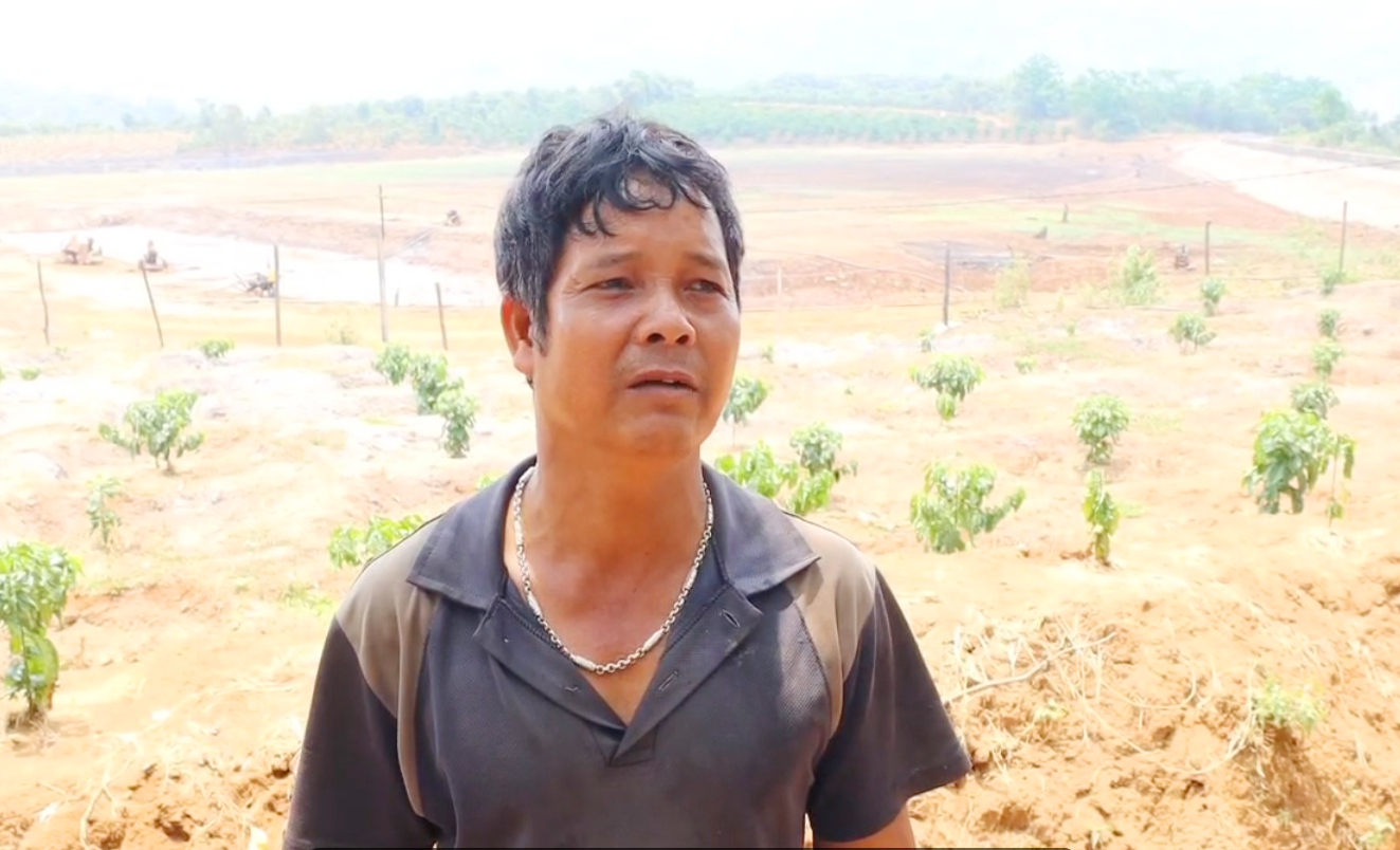 Gia đình ông Rơ Châm Bin (làng De Chí) có 2,5 sào cà phê quanh hồ đang trong tình trạng “khát nước”. Để có nước tưới, ông phải mắc võng cạnh hồ để canh nước. "Giờ không có nước, bà con rất lo lắng ảnh hưởng cây cà phê và thu nhập của người dân", ông Bin nói.