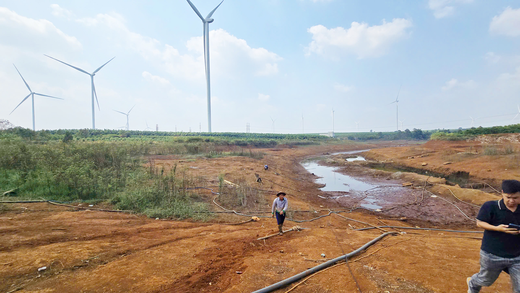 Tại hồ Ia Lâm (làng De Chí, xã Gào), người dân đã trực tiếp khoét sâu ngay giữa lòng hồ kiếm nước nhưng vẫn cạn khô. Hàng chục máy bơm đành lặng im, vắt những ống dài ra giữa hồ đợi nước. Tình hình này kéo dài, người dân trong khu vực hết sức lo lắng cây cà phê "chết cháy".