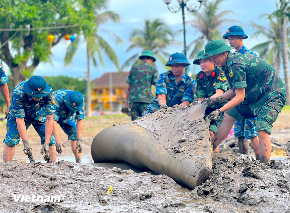 Ban Chỉ huy Phòng thủ khu vực 5 - Điện Bàn và Sự đoàn Phòng không 375 phối hợp thực hiện nhiệm vụ. (Ảnh: Thanh Phong/Vietnam+)