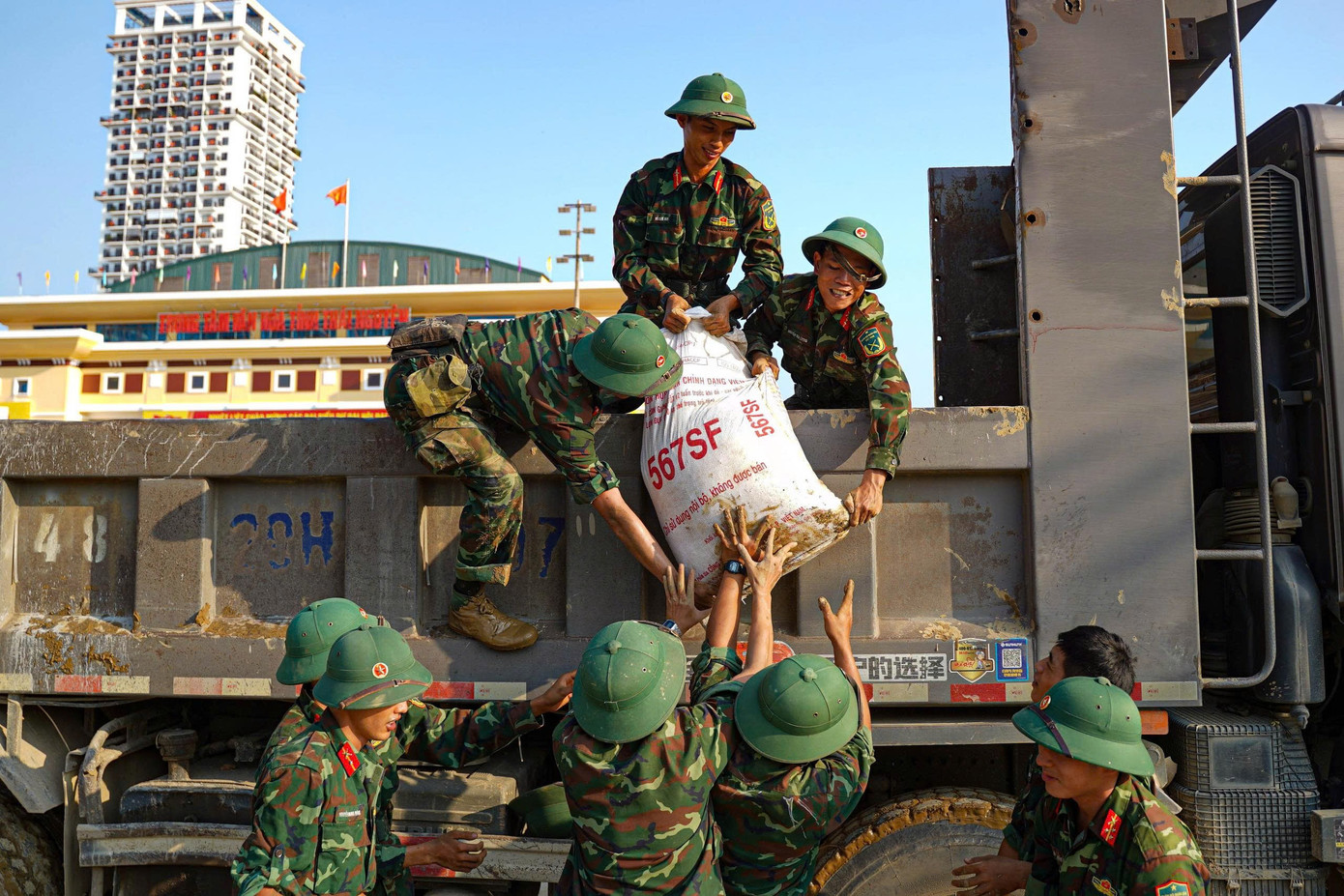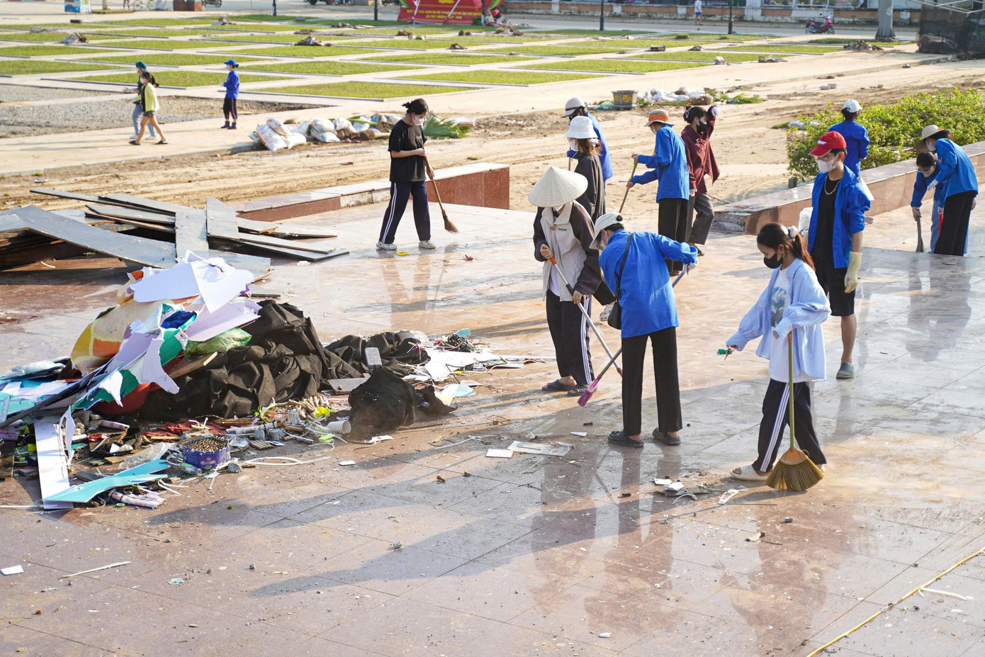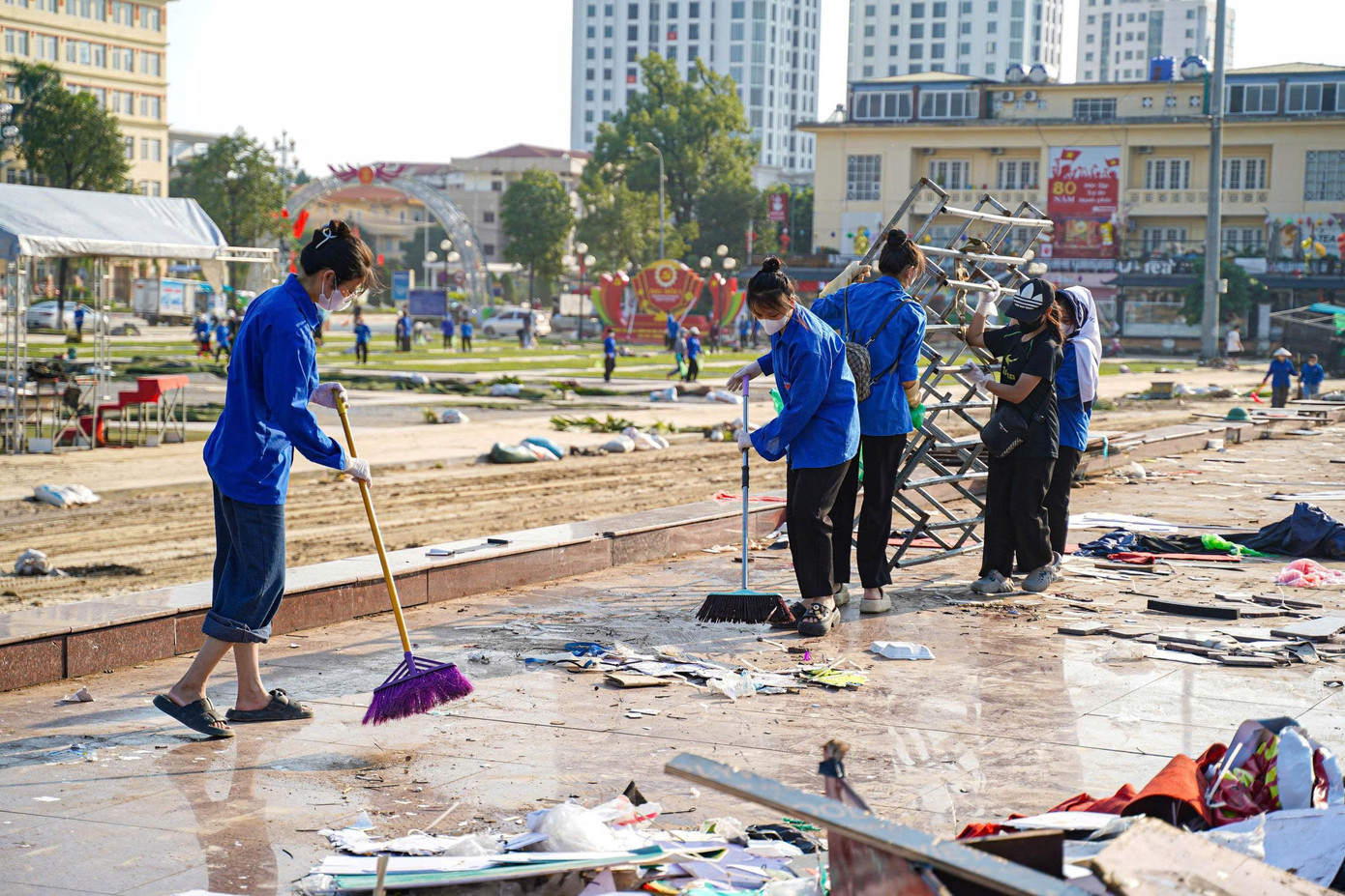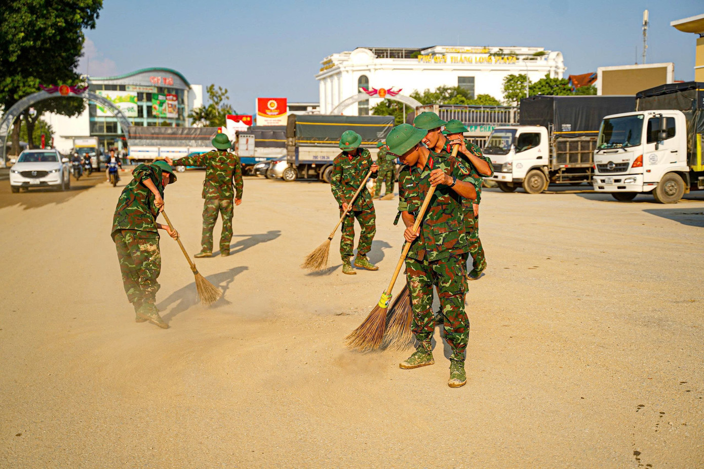 Công an và quân đội địa phương cũng tham gia cùng đoàn viên dọn dẹp, khắc phục hậu quả.