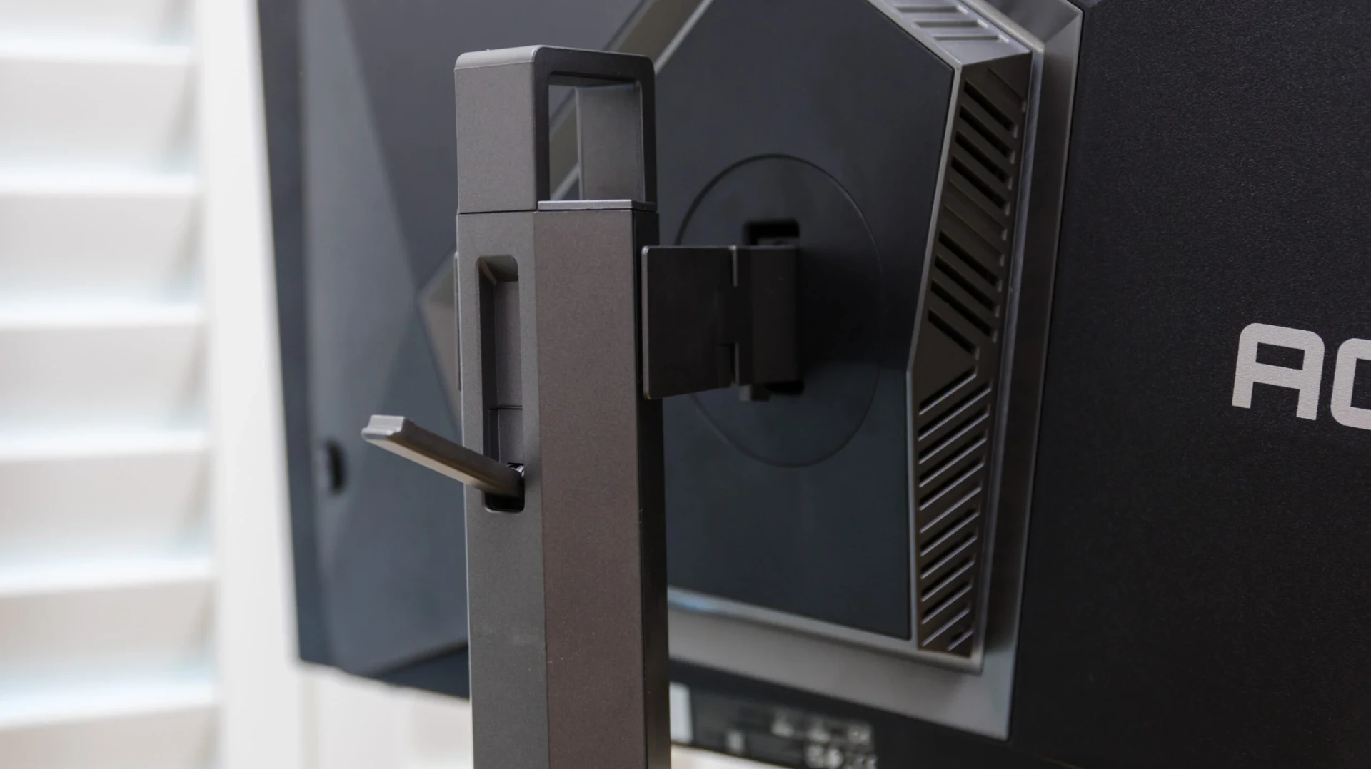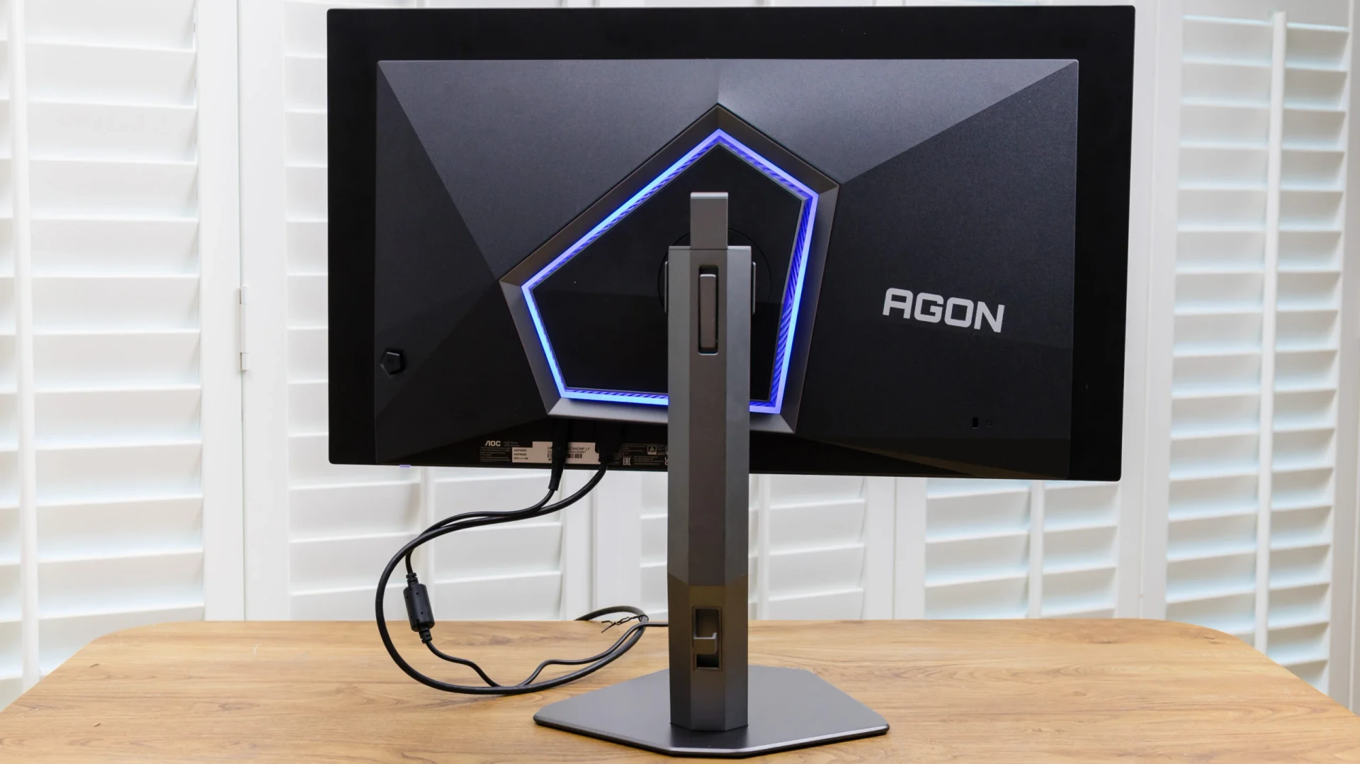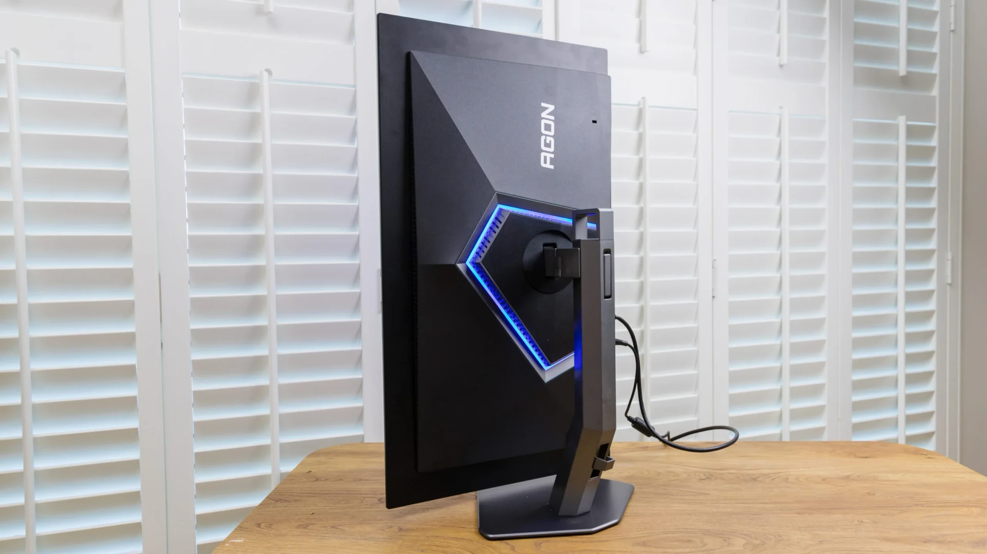 Mặc dù sử dụng cùng tấm nền W-OLED do LG sản xuất như các đối thủ, Agon Pro tạo điểm nhấn bằng ngôn ngữ thiết kế bất đối xứng. Vỏ máy phía sau có các góc cạnh lệch tâm, kết hợp cùng dải đèn LED đa giác và nút điều khiển OSD cũng được đặt lệch một bên một cách có chủ ý.