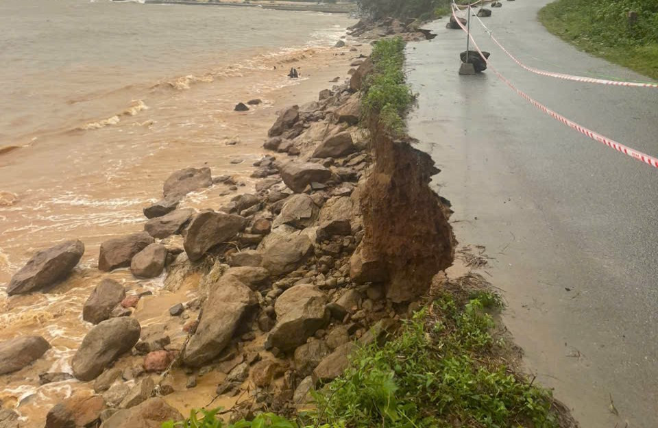 Tại xã Phú Lộc, mưa lớn kết hợp triều cường và sóng mạnh do ảnh hưởng của cơn bão số 12 đã khiến tuyến đường ven biển thôn Tân An Hải (xã Lộc Bình cũ) bị sạt lở, có nguy cơ bị cuốn ra biển gây chia cắt đi lại của hàng chục hộ dân.