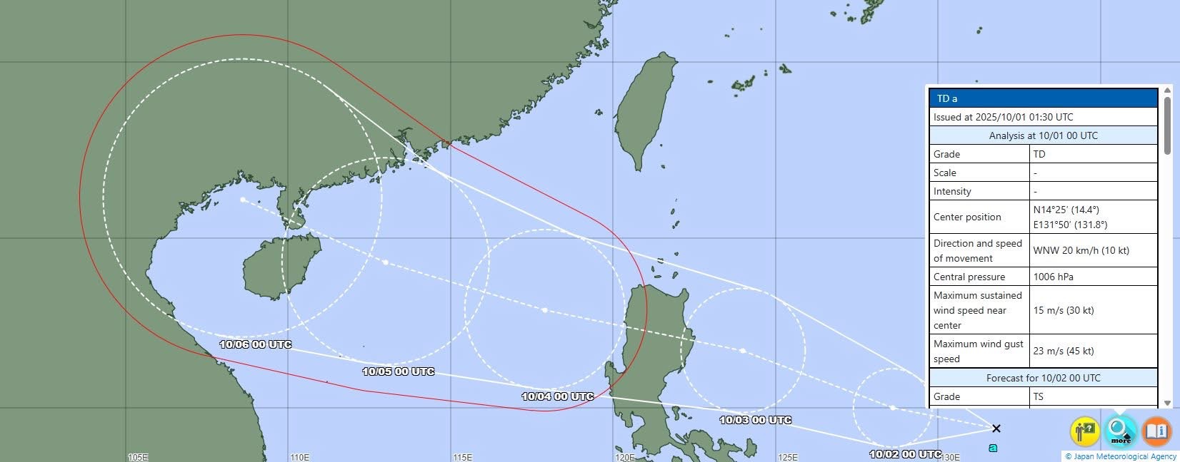 Dự báo sớm của JMA về áp thấp nhiệt đới (dự báo trở thành bão số 11) được cập nhật sáng nay 1-10
