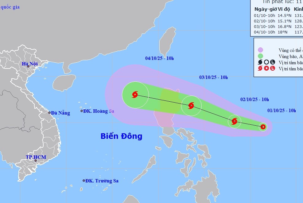 Trung tâm Dự báo Khí tượng Thủy văn Quốc gia cho biết, sáng nay (01/10), vùng áp thấp ở vùng biển phía Đông đảo Lu-Dông (Philippines) đã mạnh lên thành áp thấp nhiệt đới.