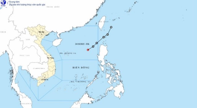 Theo đó, ngày và đêm 24/10 ở vùng biển từ Nam Quảng Trị đến Cà Mau, từ Cà Mau đến An Giang, vịnh Thái Lan, khu vực Bắc và Giữa Biển Đông (bao gồm đặc khu Hoàng Sa) và khu vực Nam Biển Đông (bao gồm đặc khu Trường Sa) có mưa rào và dông rải rác. Trong mưa dông có khả năng xảy ra lốc xoáy, gió giật mạnh cấp 6-7 và sóng biển cao trên 2,0m.