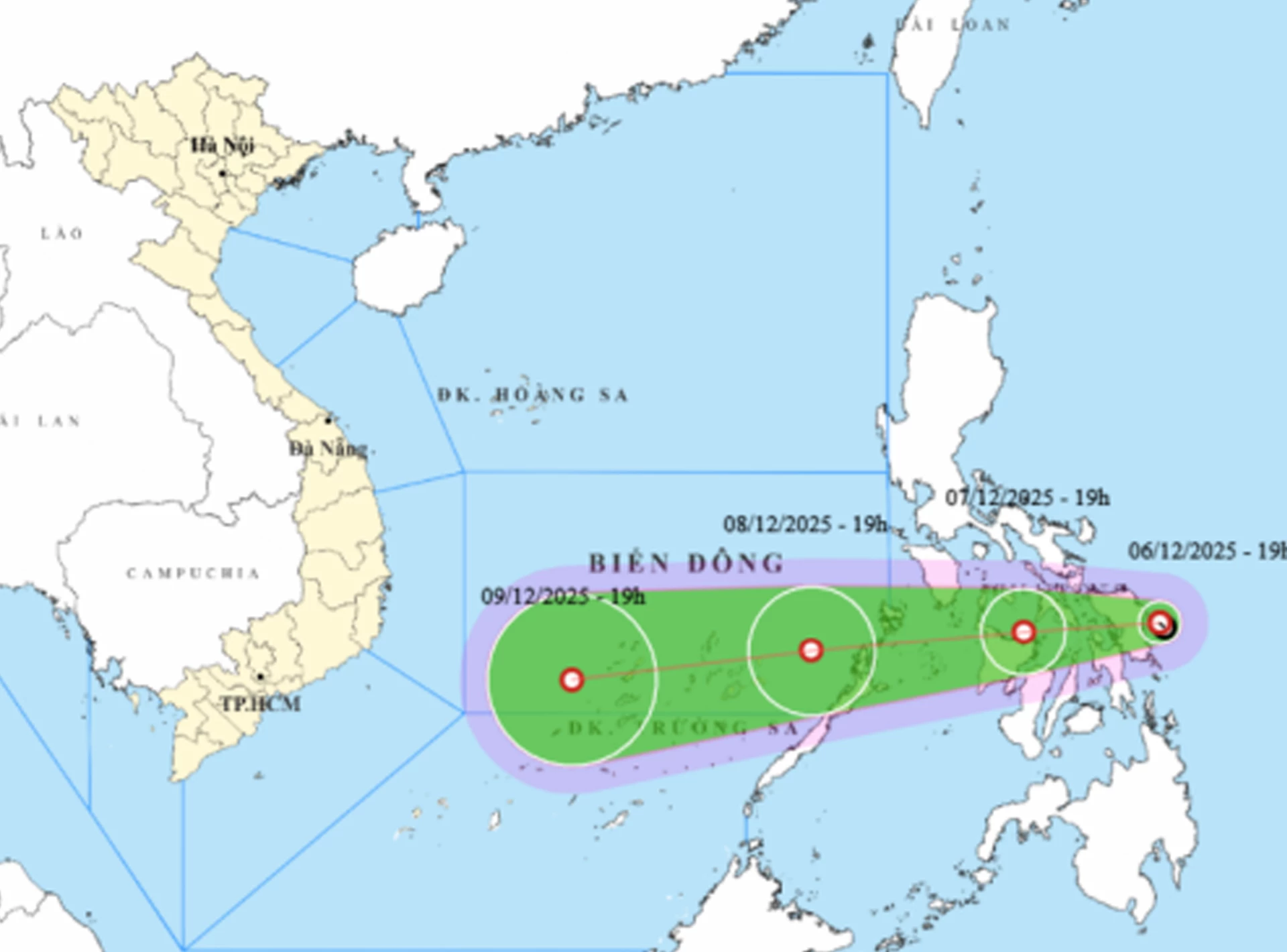 Theo bản tin của Đài Khí tượng thủy văn tỉnh Khánh Hòa, hồi 19 giờ ngày 6-12, áp thấp nhiệt đới (ATNĐ) nằm trên vùng ven biển phía Đông của khu vực miền Trung Philippines. Sức gió mạnh nhất vùng gần tâm ATNĐ mạnh cấp 6 (39-49km/giờ), giật cấp 8. ATNĐ di chuyển chậm theo hướng Tây, tốc độ khoảng 5km/giờ.