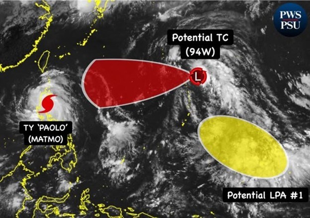 Áp thấp xuất hiện ngay sau bão số 11 Matmo. Ảnh: Philippine Weather System/Pacific Storm Update